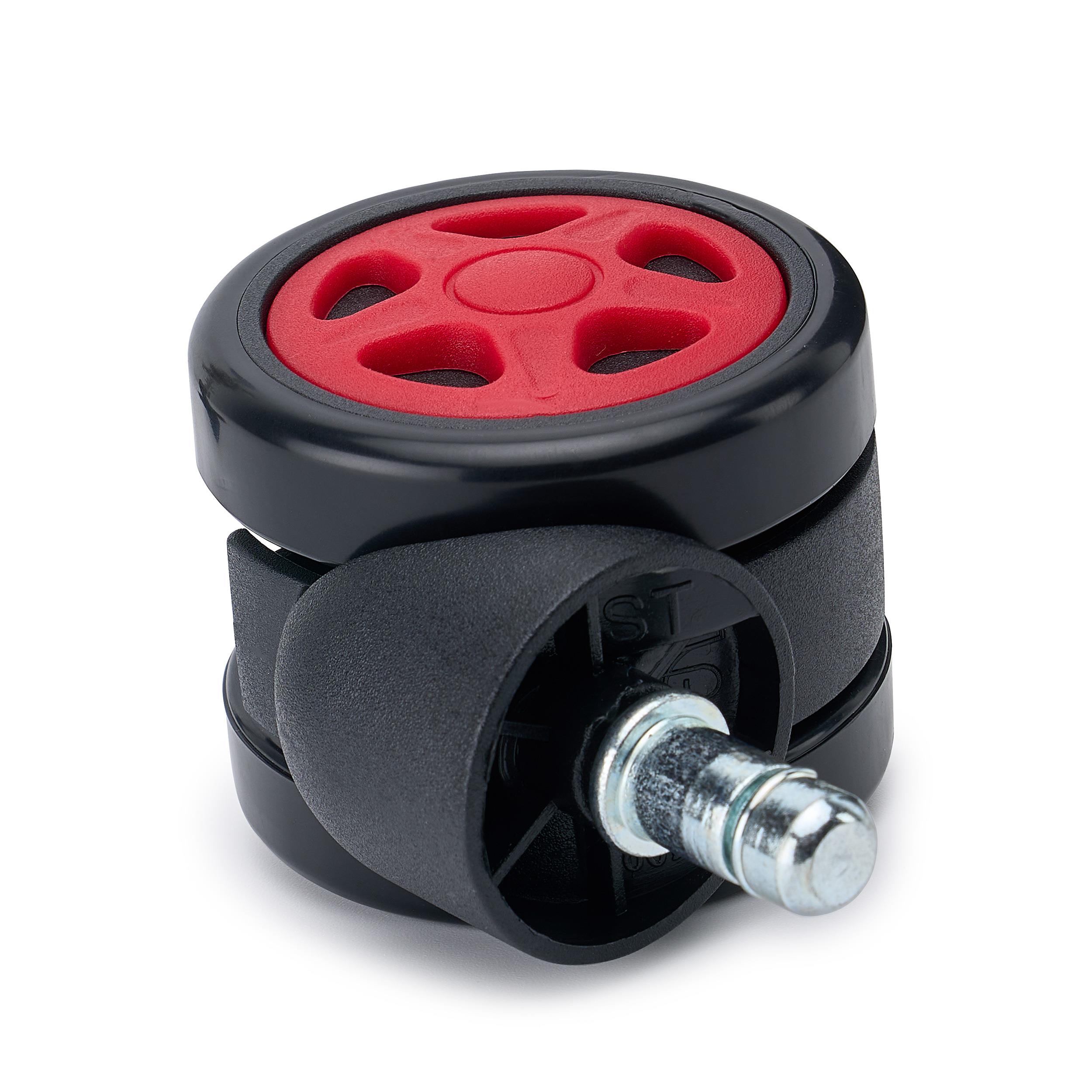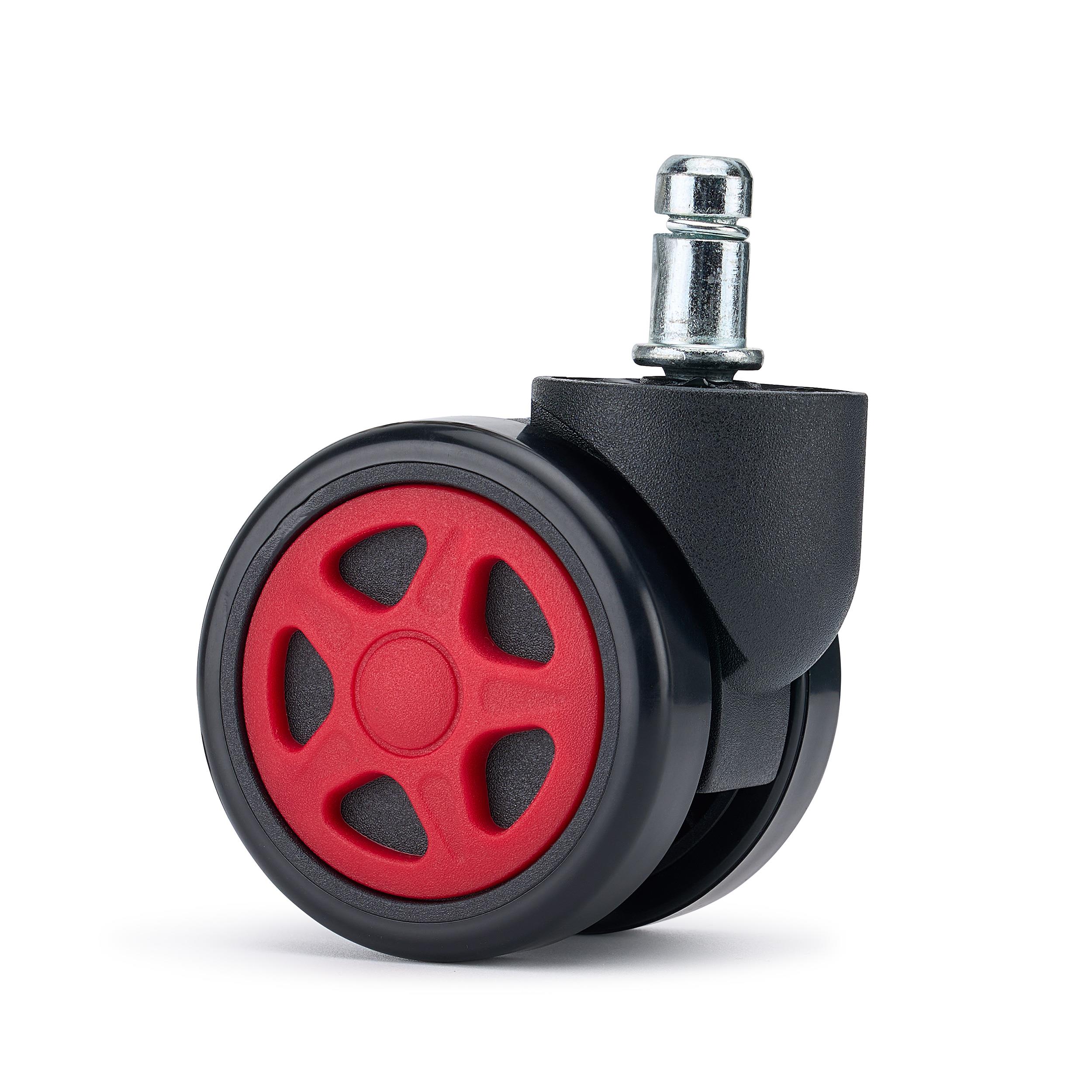 5er Set Hartbodenrollen SPEED 11x50 mm, Gummibeschichtung, Gaming-Design, Farbe Rot