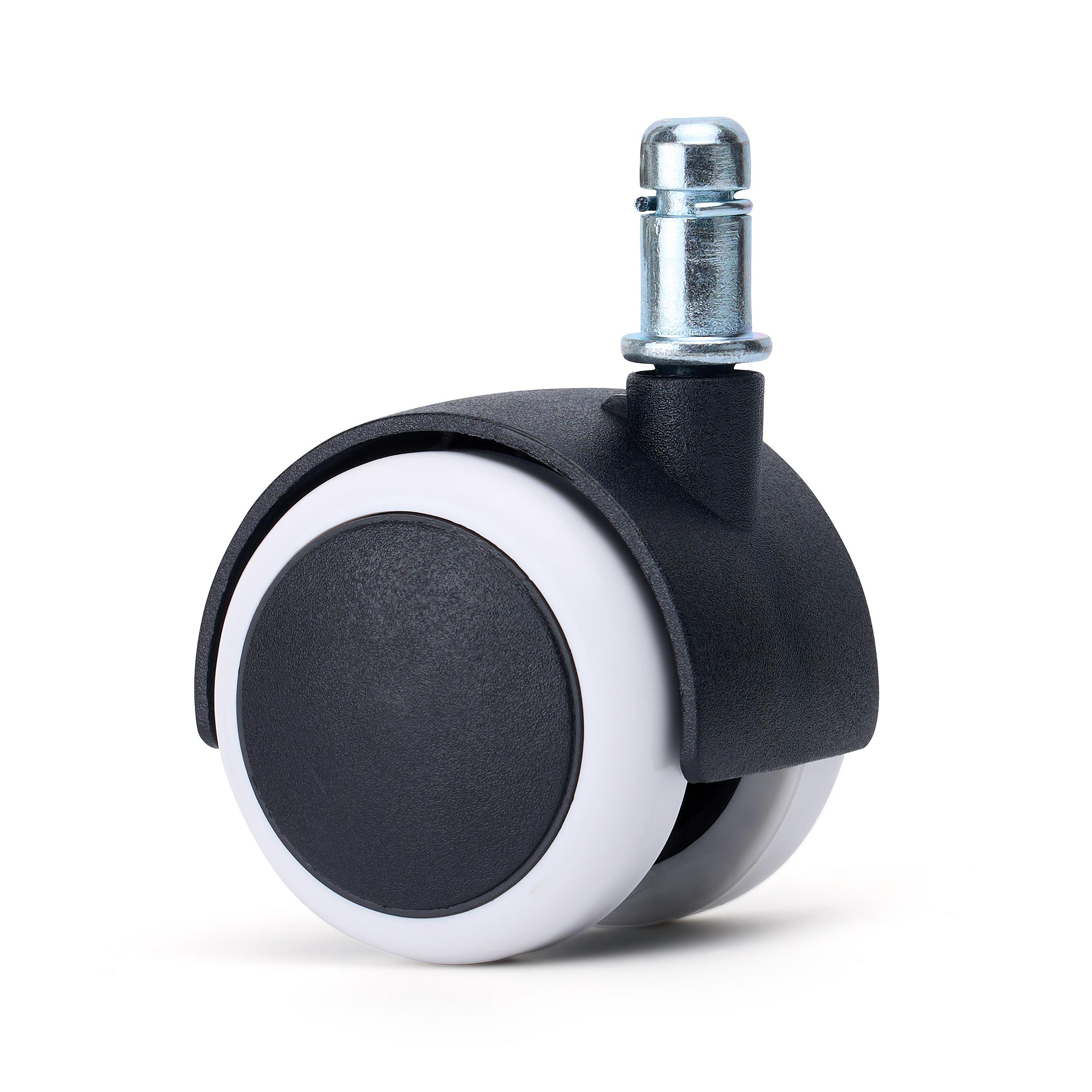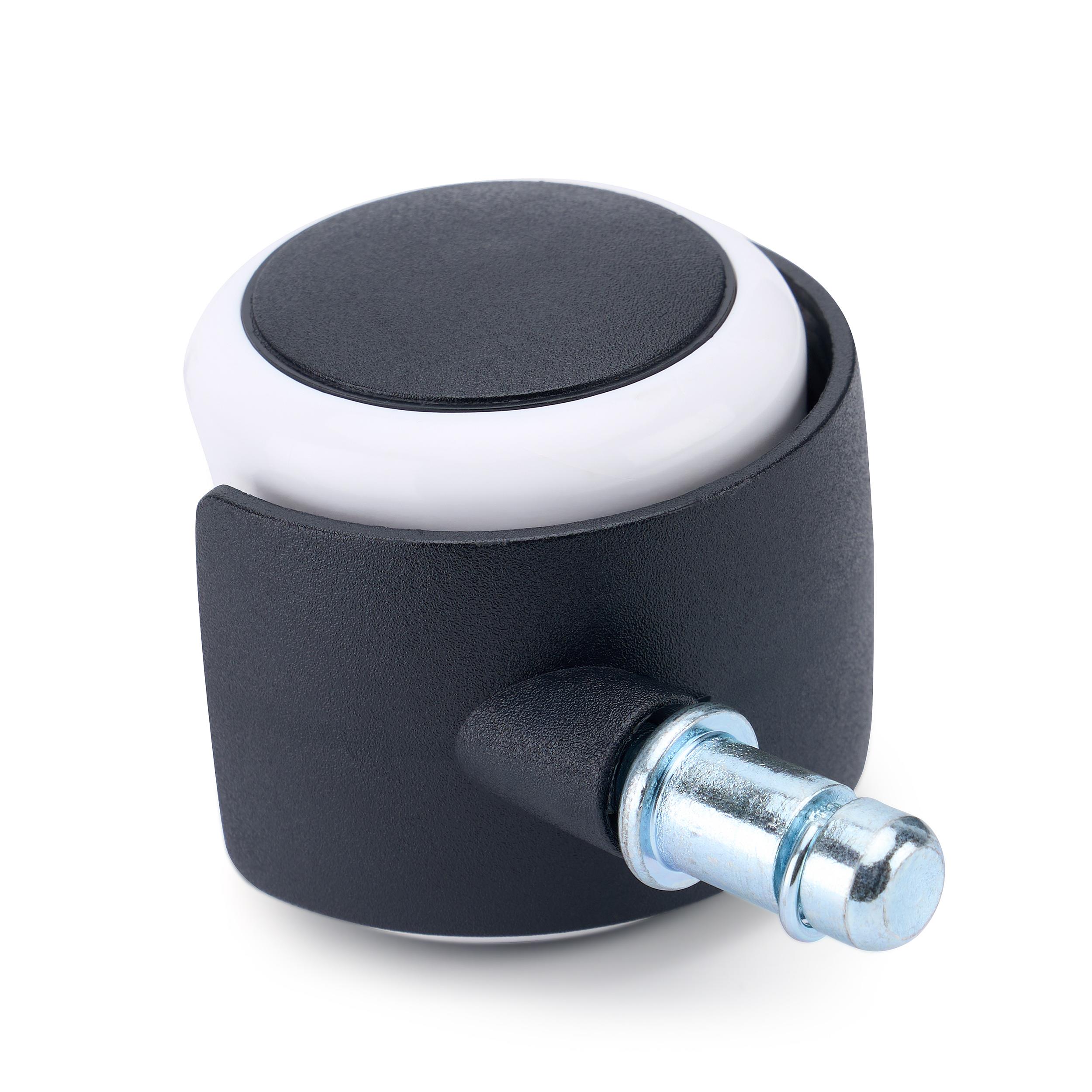 Der Rollendurchmesser beträgt 50 mm und der Stift hat einen Durchmesser von 11 mm, die gängigste Größe bei Rollen für Bürostühle. Der Stift wird ganz einfach per Druck eingesetzt, es sind keine Werkzeuge erforderlich.