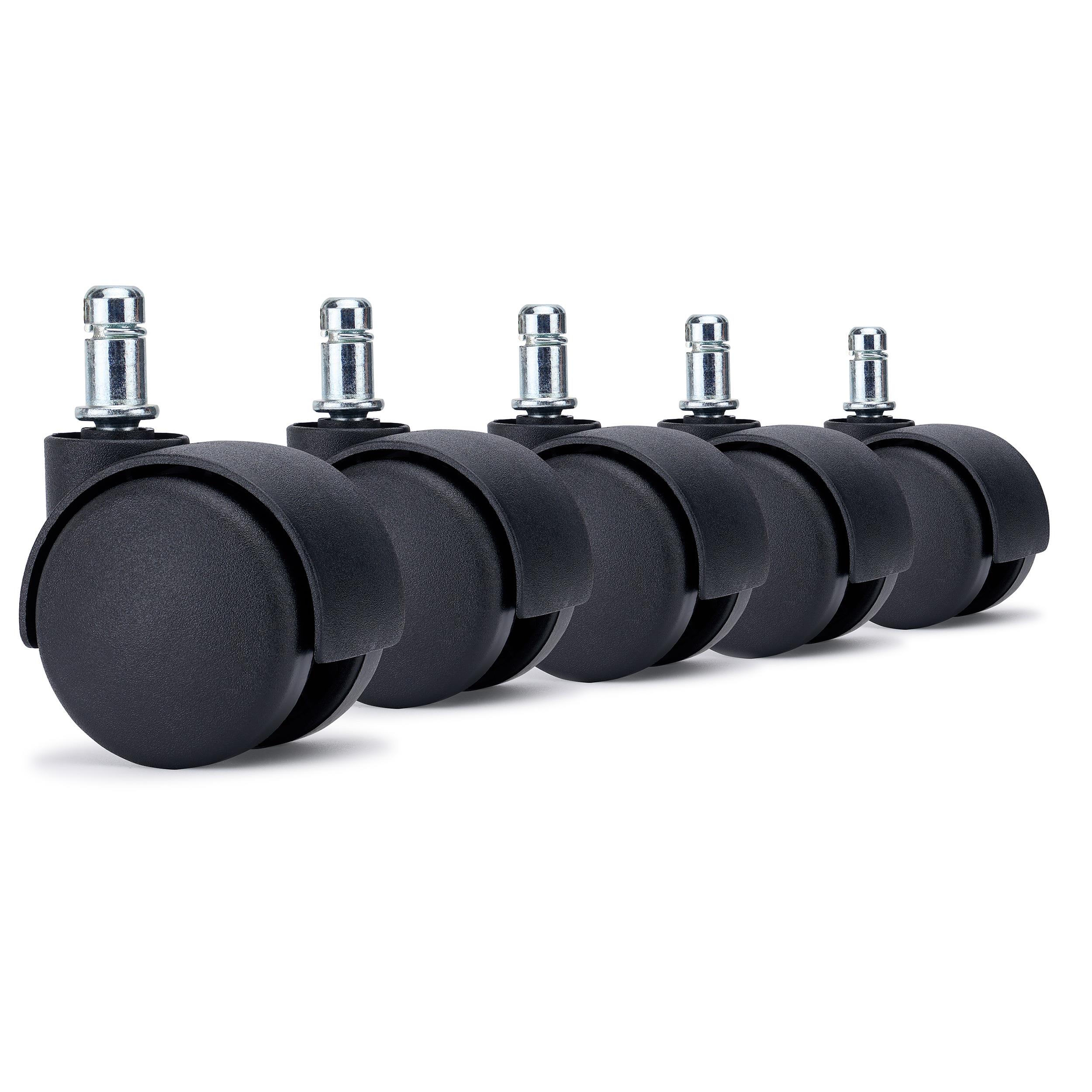 5er Set Rollen SPIN, 11x50mm, für Teppichböden, Hartplastik, Farbe Schwarz
