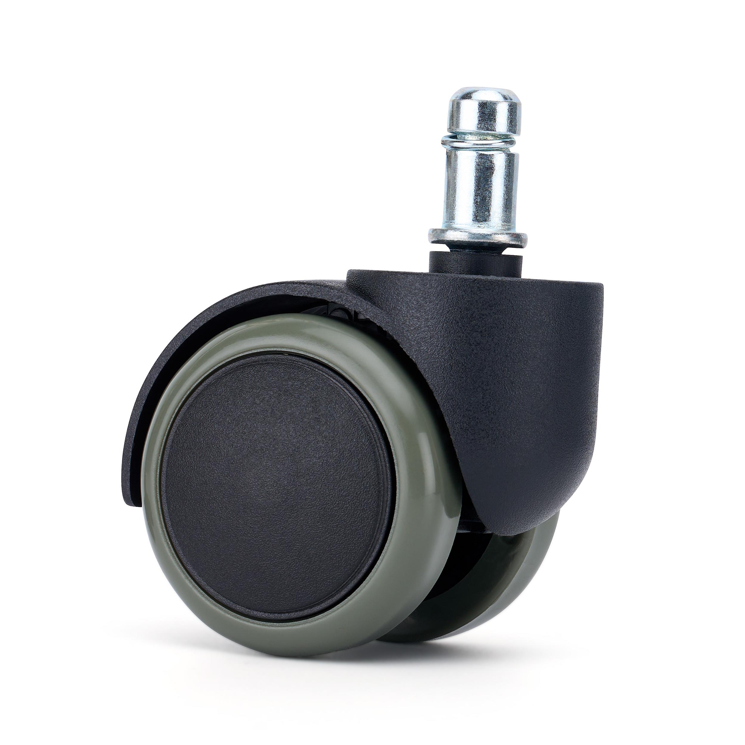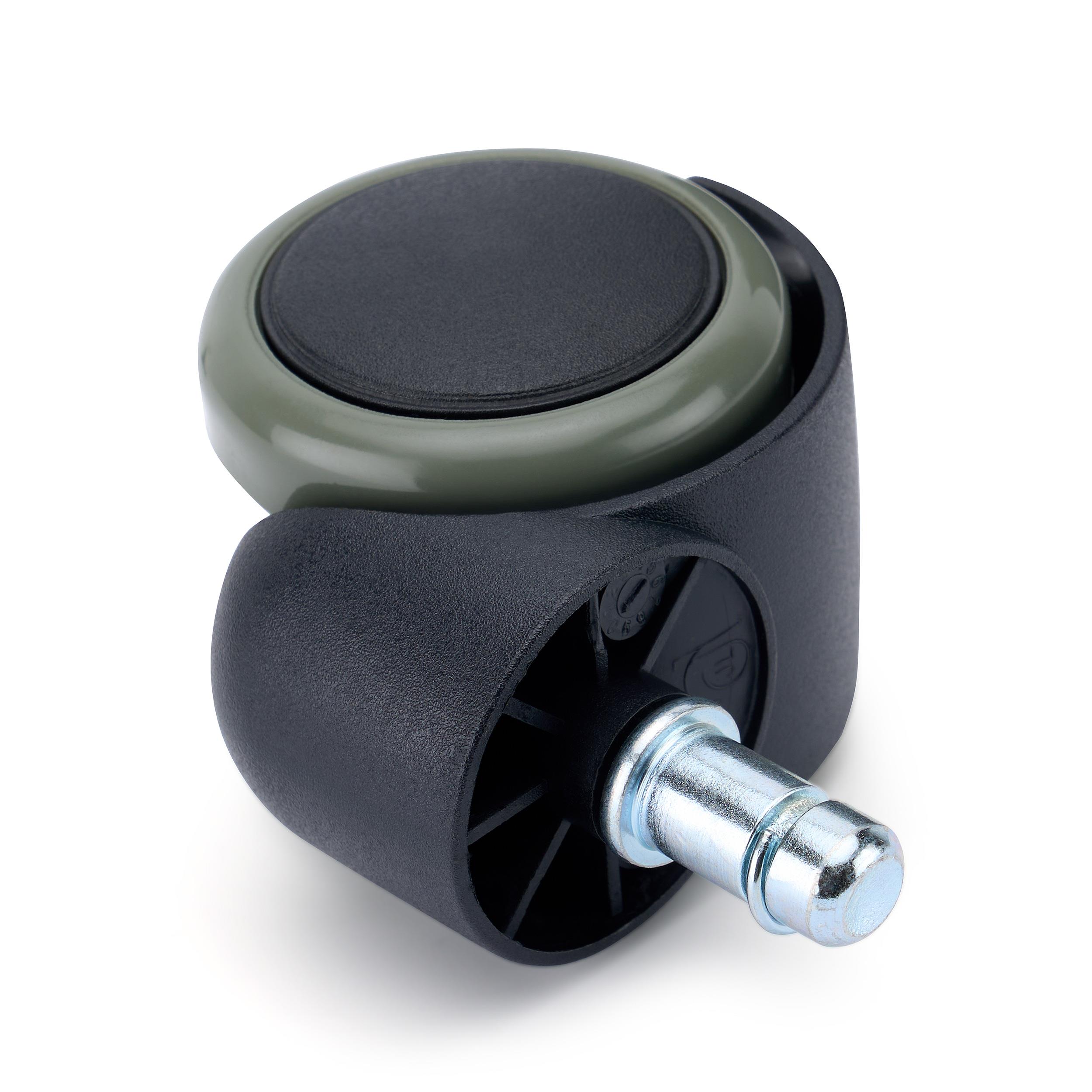 Die Montage ist dank des universellen, bei den meisten Bürostühlen passendem  11-mm-Metallstifts, der für einen festen und dauerhaften Halt sorgt, sehr einfach. Die Vielfalt der erhältlichen Farben ermöglicht eine vollständige Individualisierung, sodass die Rollen perfekt auf die Farbe des Stuhlgestells oder die Details der umgebenden Einrichtung abgestimmt werden können.