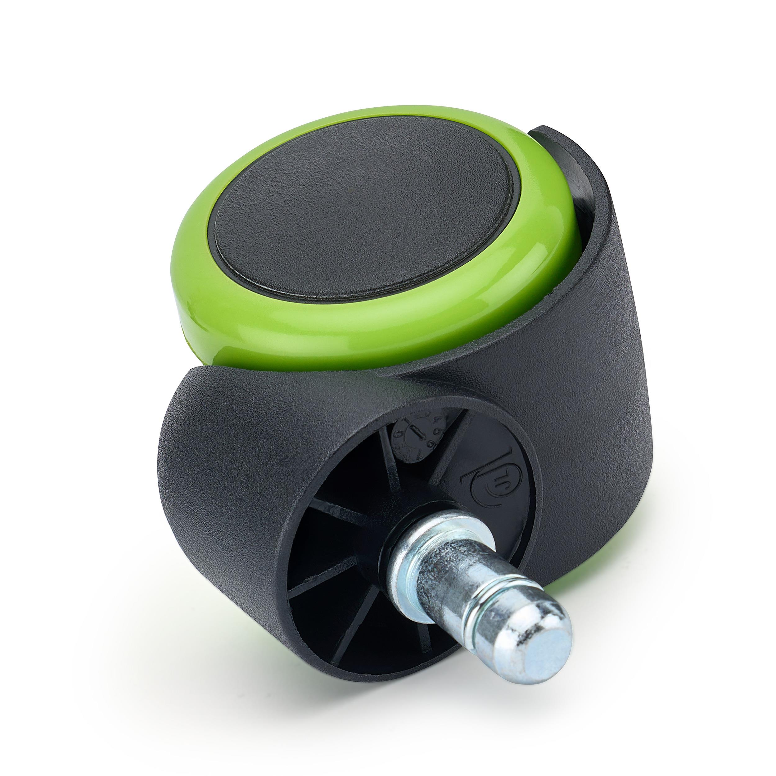 Die Montage ist dank des universellen, bei den meisten Bürostühlen passendem  11-mm-Metallstifts, der für einen festen und dauerhaften Halt sorgt, sehr einfach. Die Vielfalt der erhältlichen Farben ermöglicht eine vollständige Individualisierung, sodass die Rollen perfekt auf die Farbe des Stuhlgestells oder die Details der umgebenden Einrichtung abgestimmt werden können.