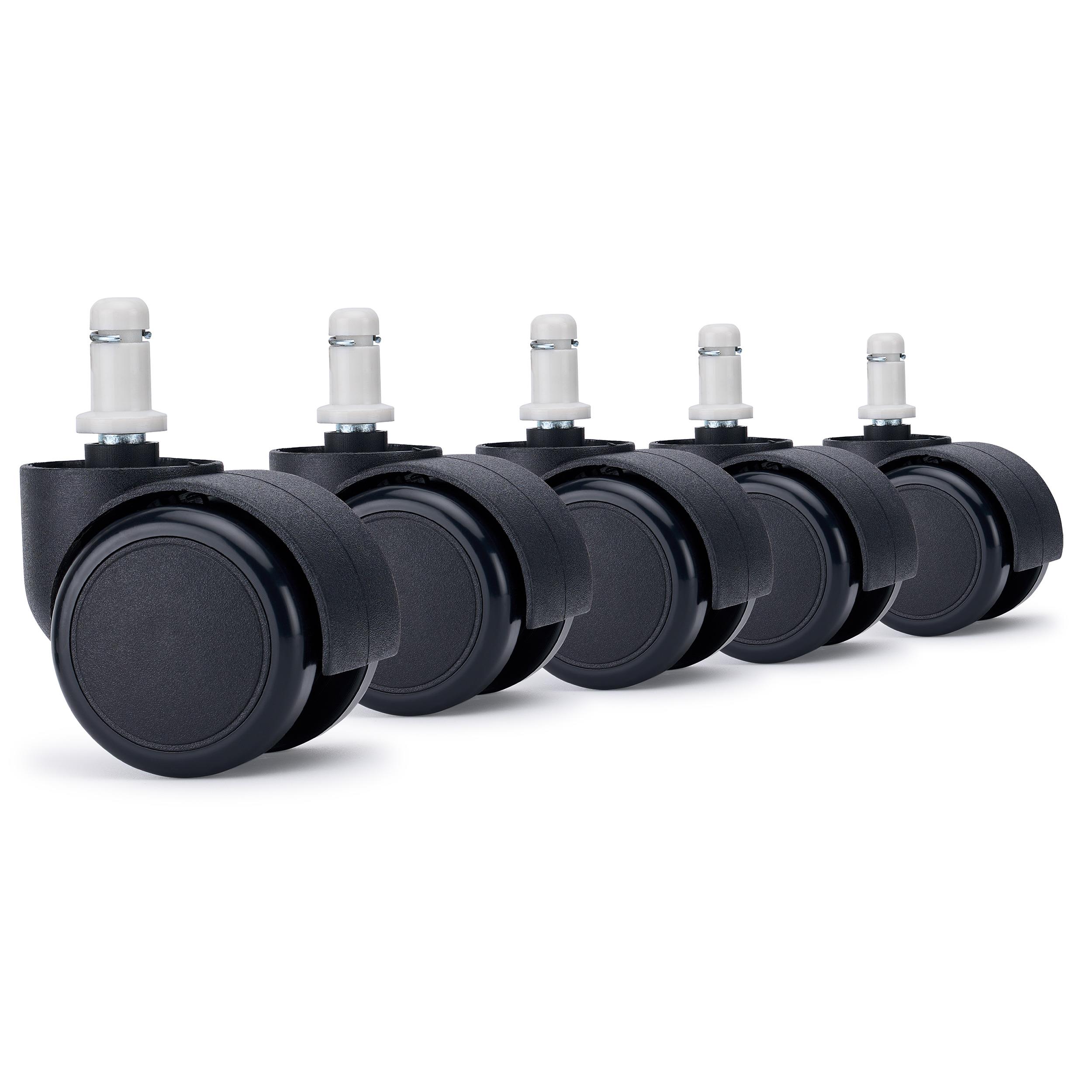 5er Set Rollen VELO, 11x50mm, extra für Hartboden, Farbe Schwarz mit Nylonstift
