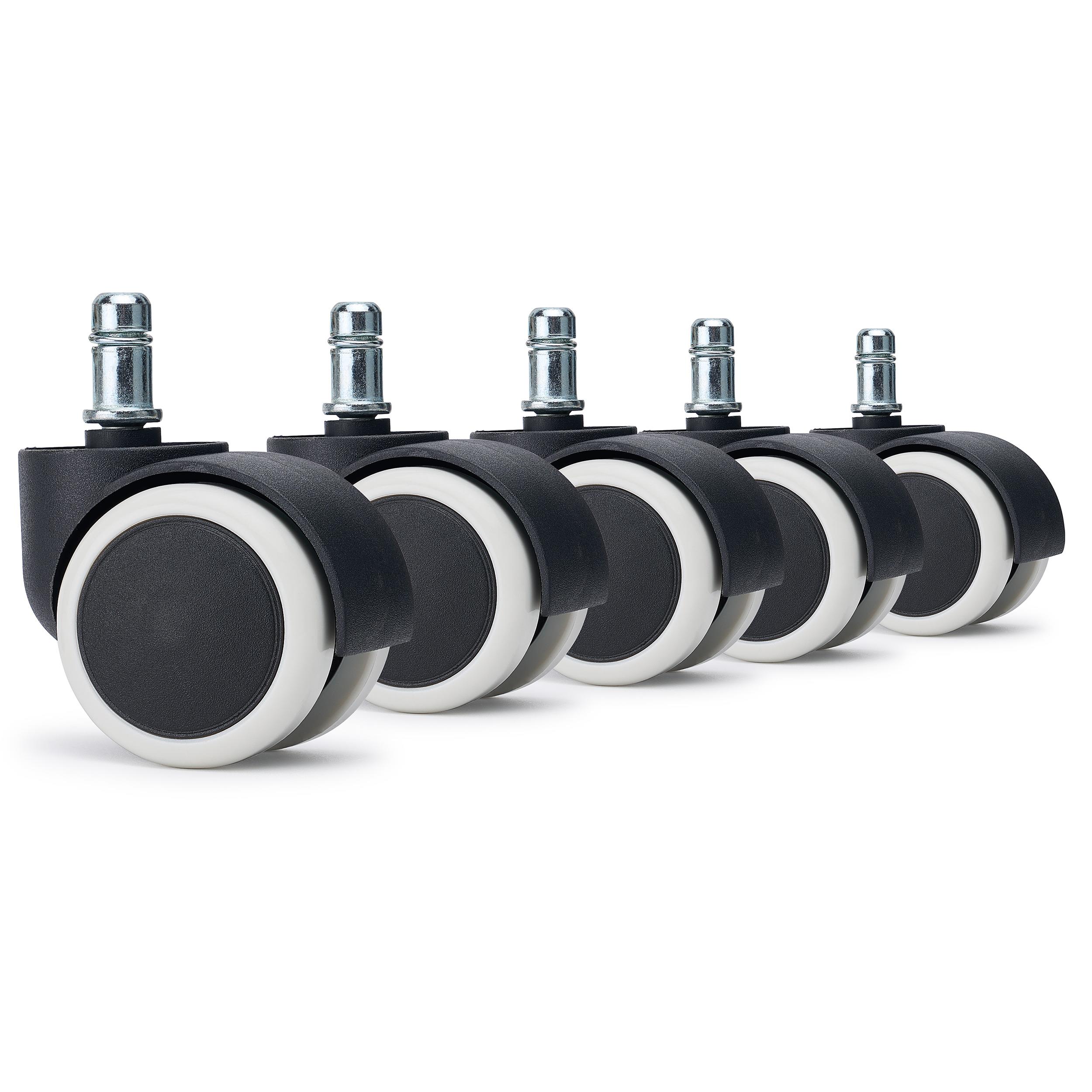 5er-Set Rollen für Bürostühle VELO. Noch nie war es so einfach und stilvoll, den eigenen Arbeitsplatz aufzufrischen. Diese Rollen zeichnen sich durch ein modernes, minimalistisches Design aus, das durch weiche Linien und eine gummierte Oberfläche besticht und perfekt zu jeder Art von Stuhl passt – vom Chefsessel bis hin zu den dynamischsten Gaming-Modellen. Es handelt sich nicht nur um ein funktionales Bauteil, sondern um ein echtes Einrichtungselement, das das gesamte Schreibtisch-Setup mit einem Hauch von Schlichtheit und Eleganz auffrischt.
