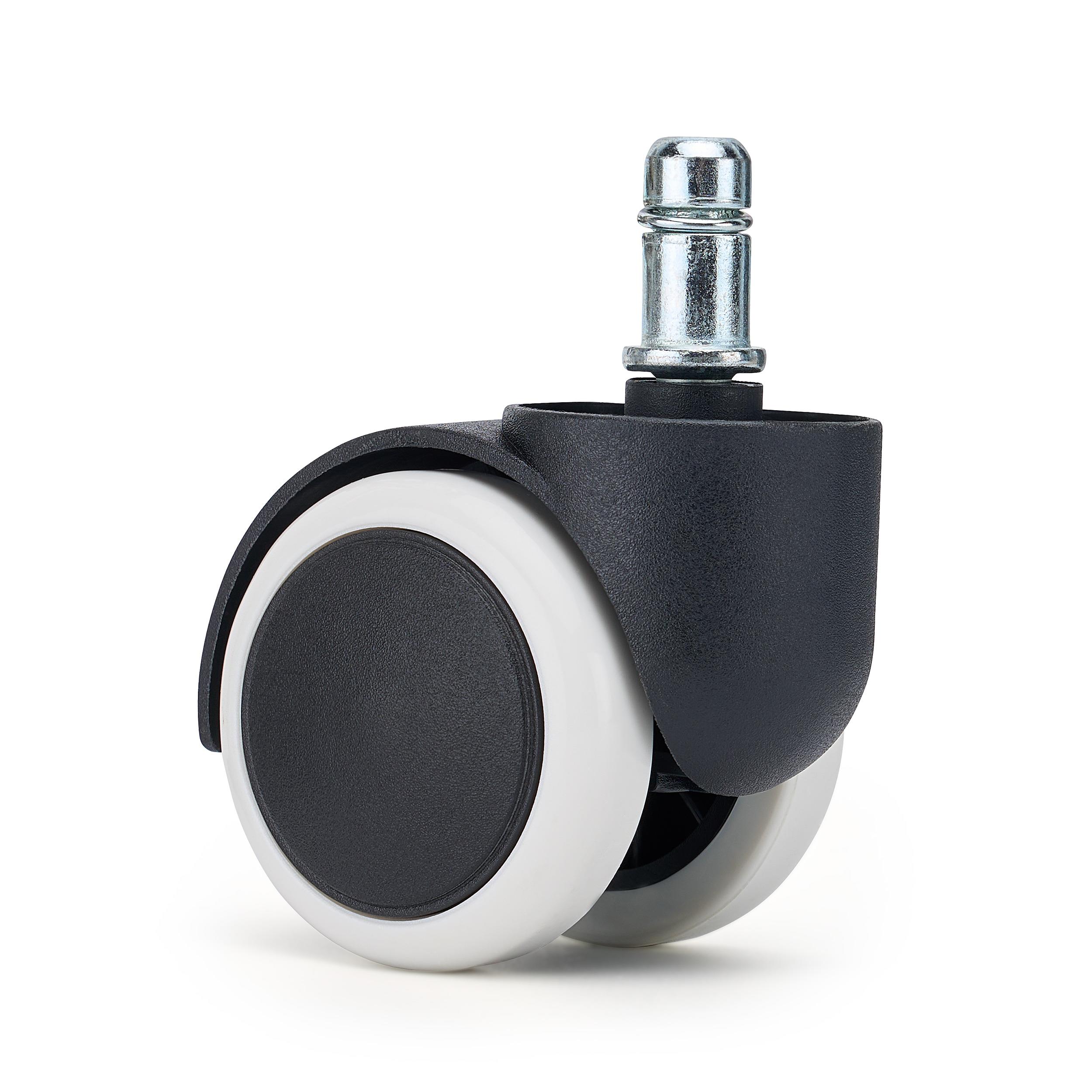 Die Montage ist dank des universellen, bei den meisten Bürostühlen passendem  11-mm-Metallstifts, der für einen festen und dauerhaften Halt sorgt, sehr einfach. Die Vielfalt der erhältlichen Farben ermöglicht eine vollständige Individualisierung, sodass die Rollen perfekt auf die Farbe des Stuhlgestells oder die Details der umgebenden Einrichtung abgestimmt werden können.