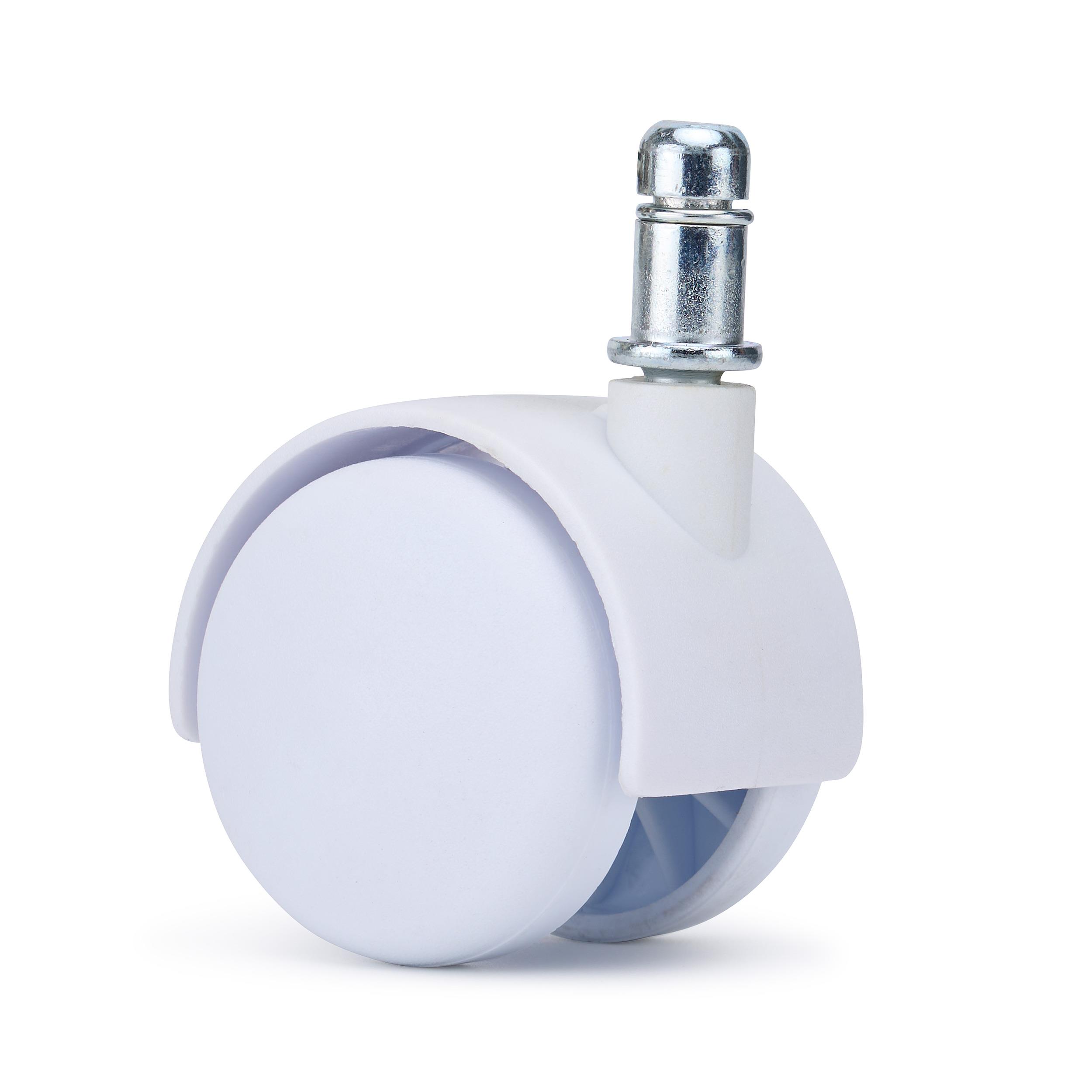 5er Set Teppichbodenrollen MOVE. Mit ihrem modernen und zeitlosen Design passen sie perfekt zu jedem Bürostuhl. Diese spezielle Version in wunderschönem Polarweiß wurde speziell für weiße oder helle Stühle entwickelt und verleiht ihnen eine besonders attraktive Optik.