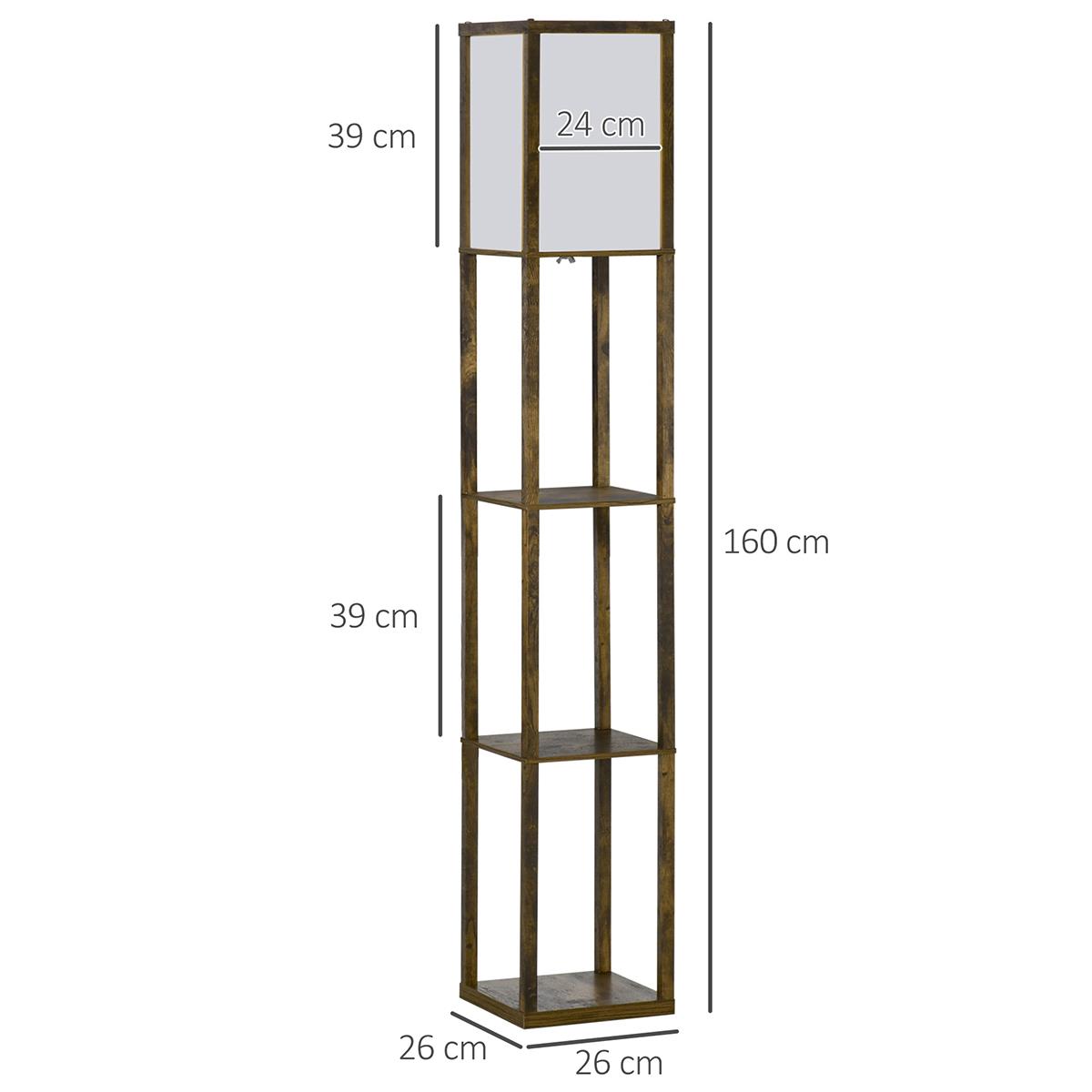 Büroleuchte TALIA, Stehlampe integriert in Regal mit 3 Ablagen, Holz, Farbe Rustik