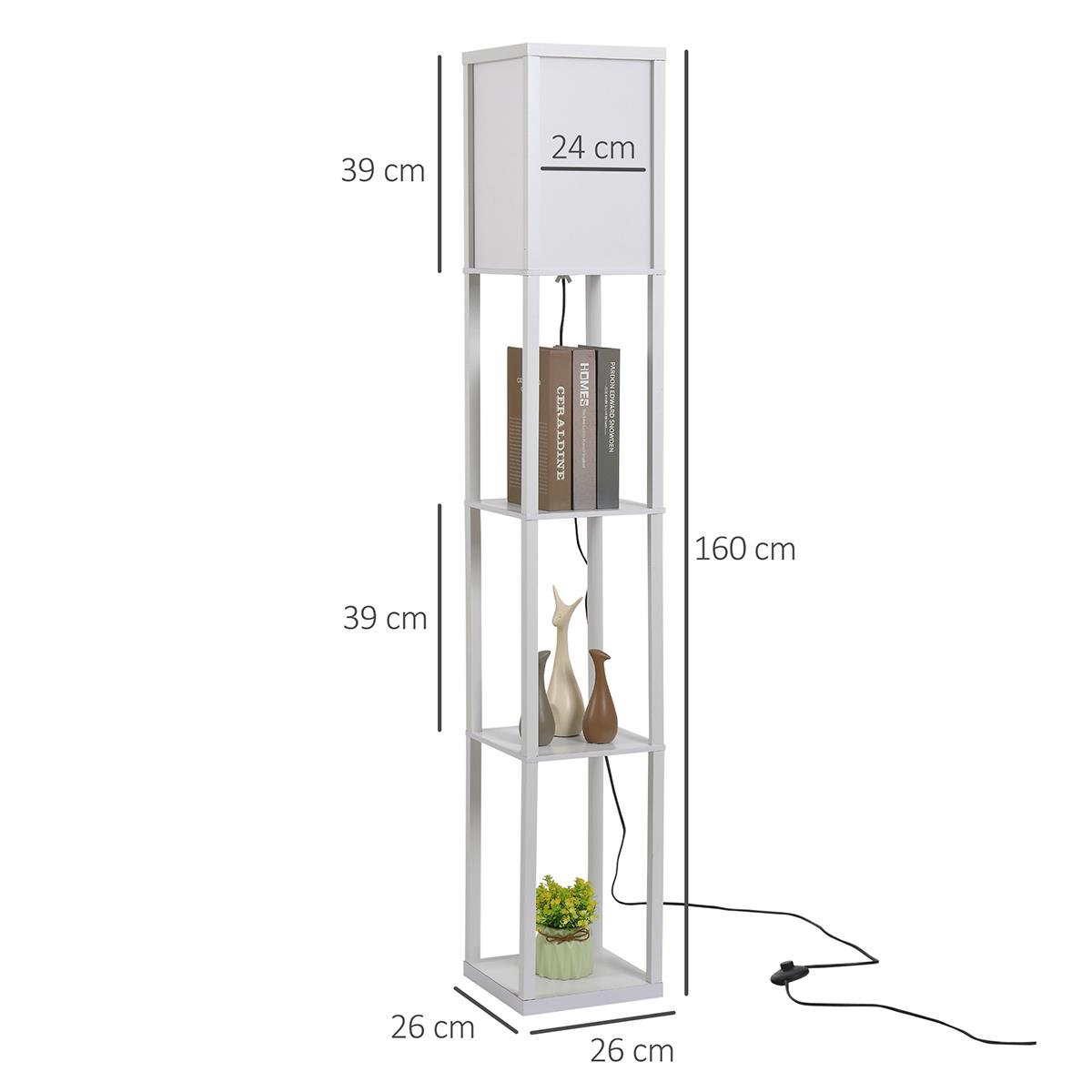 Büroleuchte TALIA, Stehlampe integriert in Regal mit 3 Ablagen, Holz, Farbe Weiß