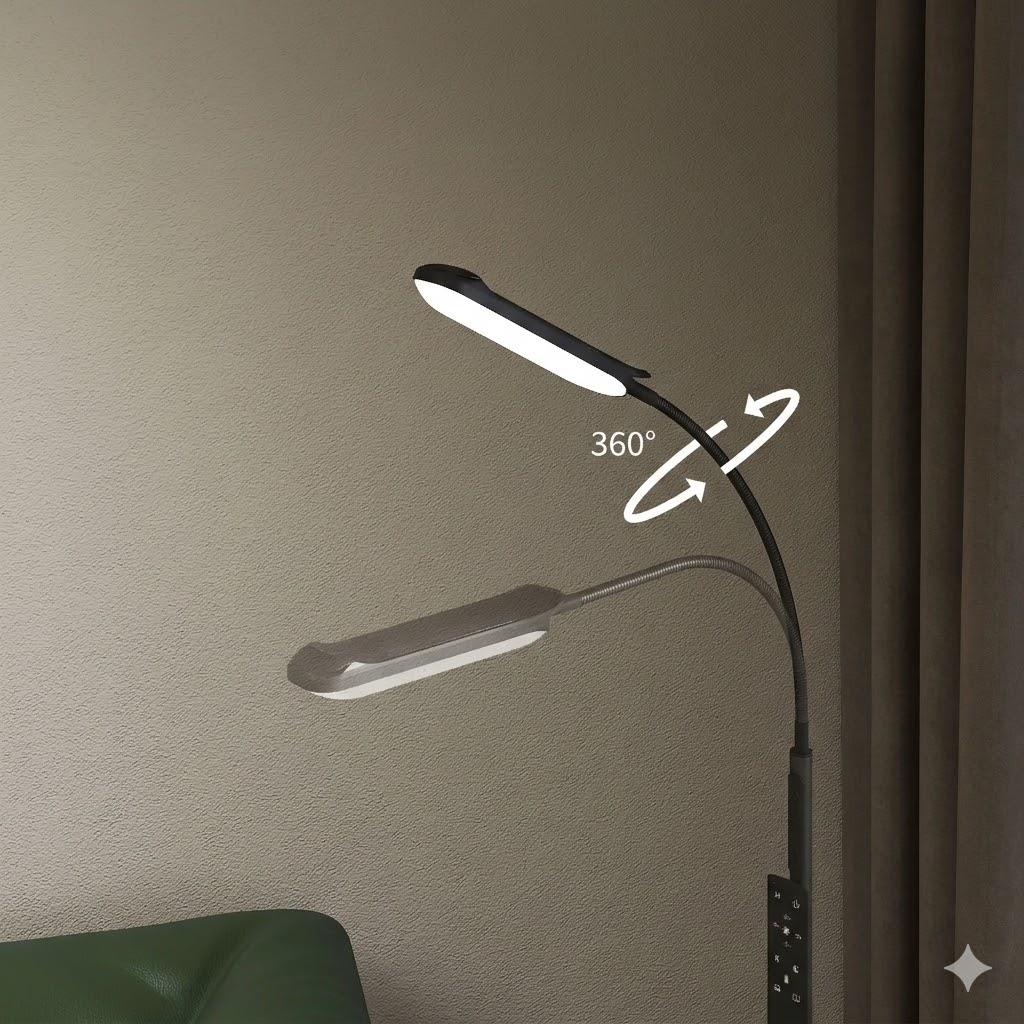 • Flexibler, um 360° drehbarer Lampenarm