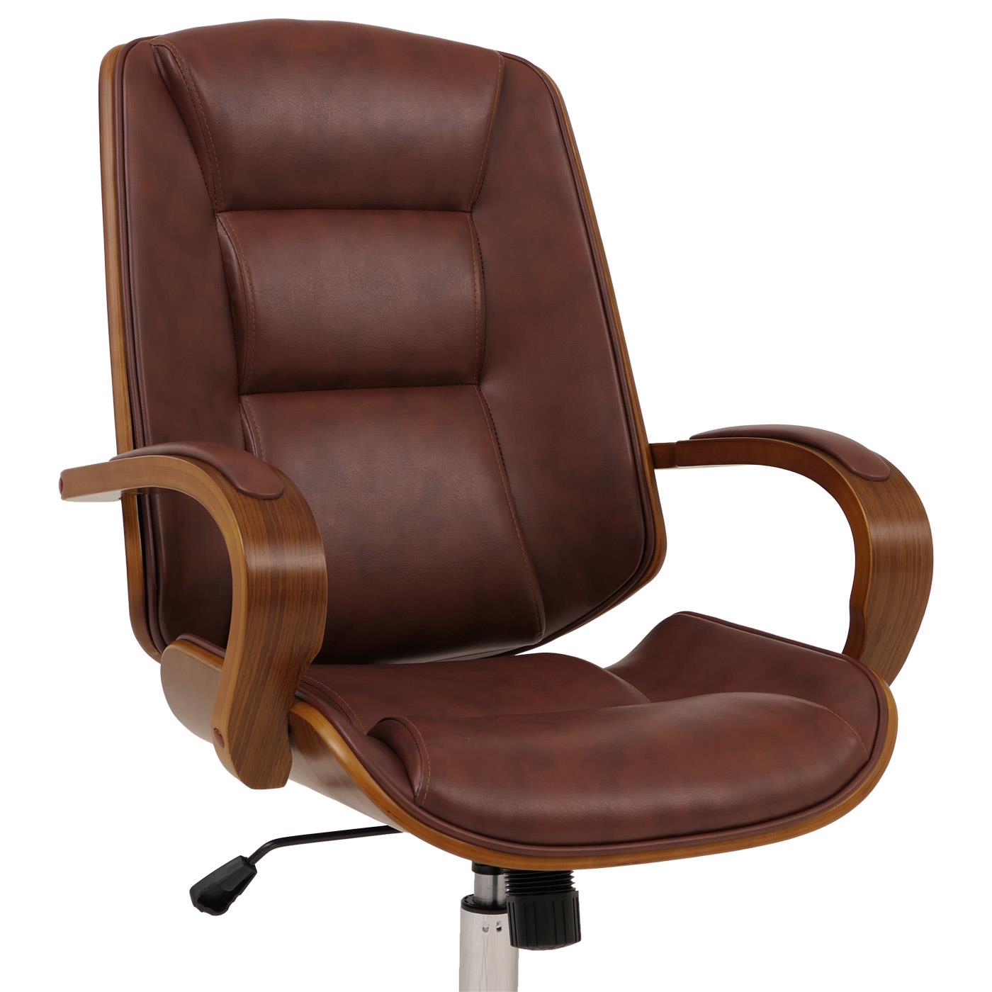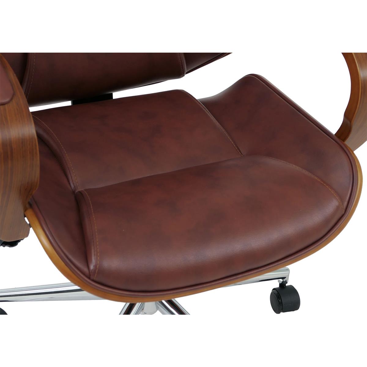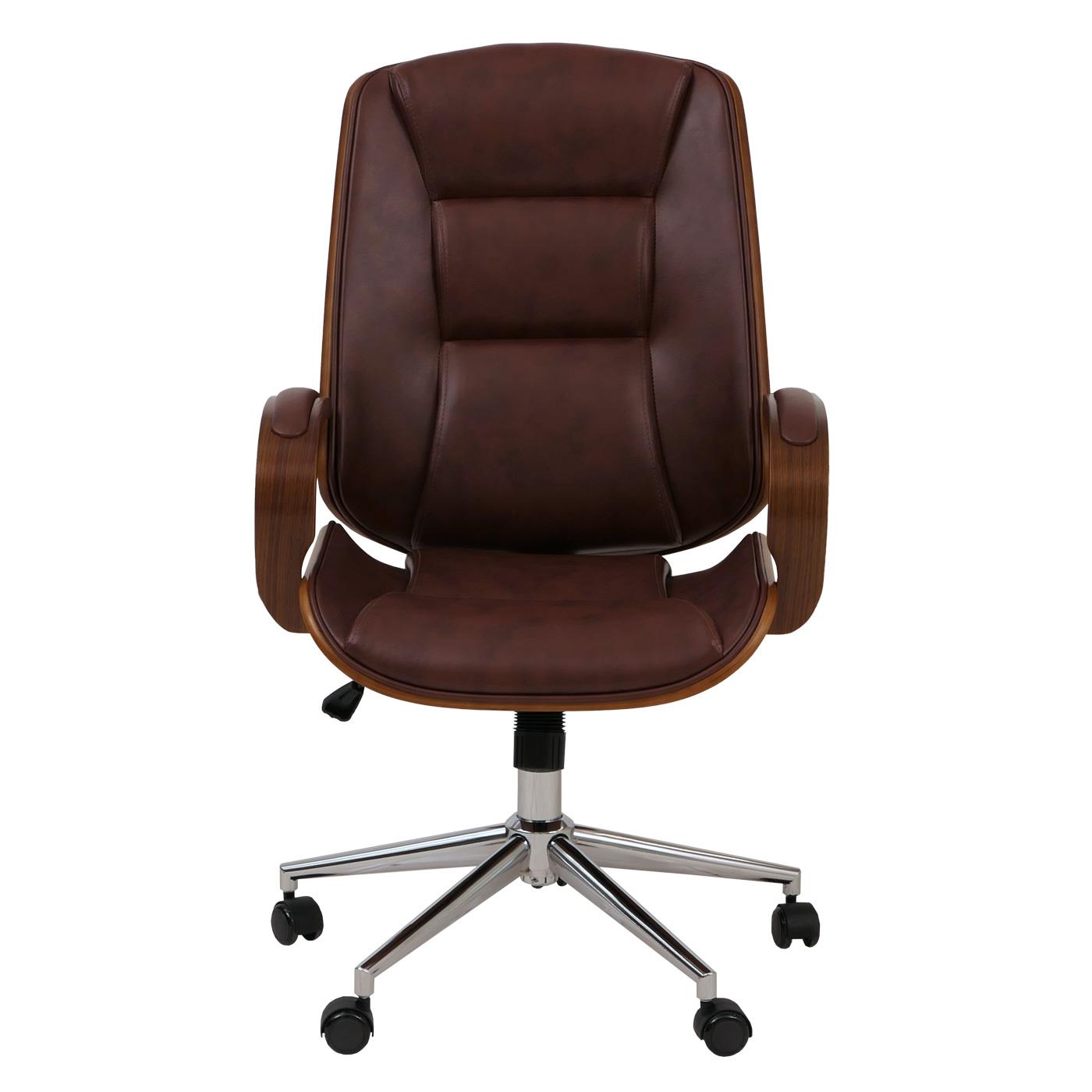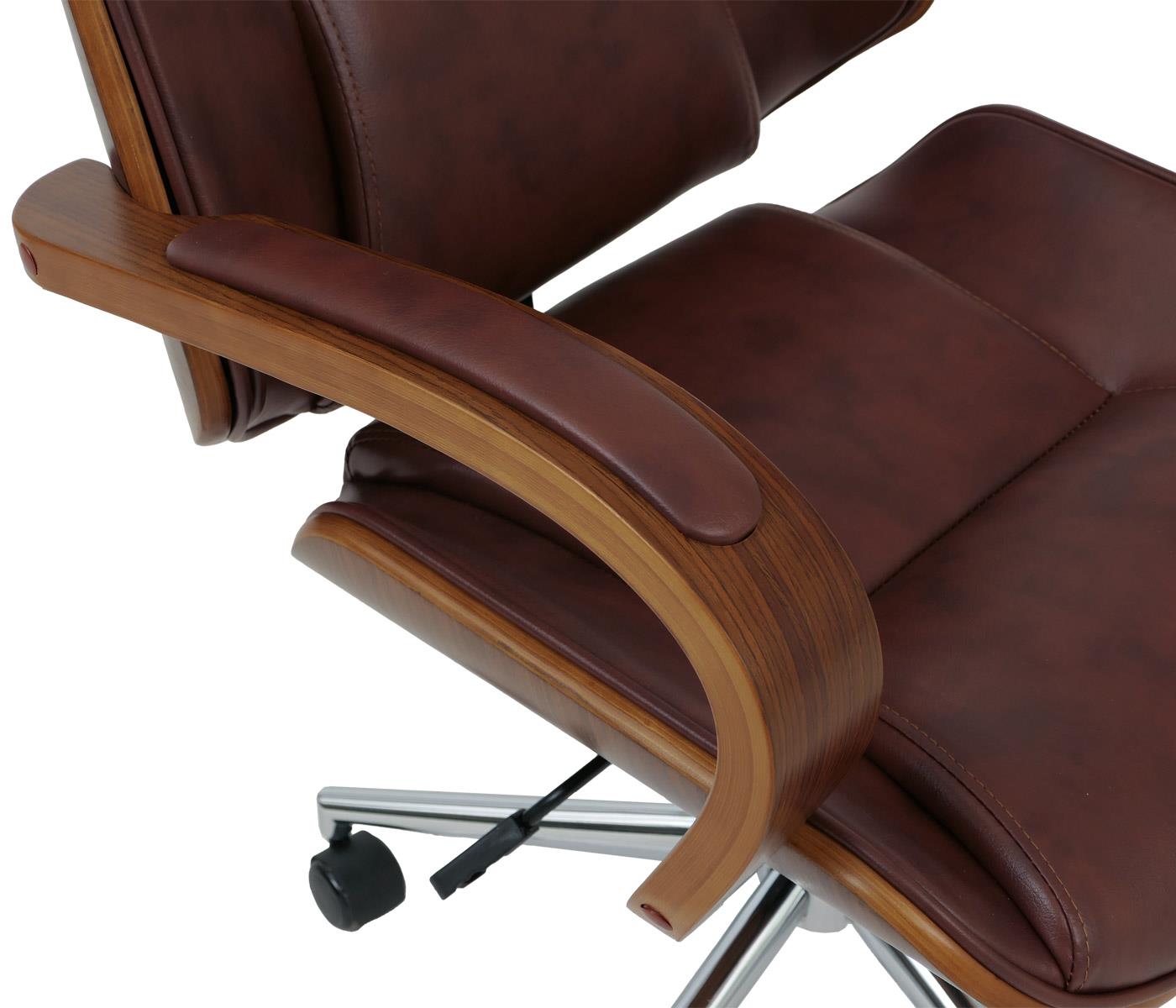 Bürostuhl CLARIN, ein Modell, das sich durch sein raffiniertes Design und seinen hohen Komfort auszeichnet. Eine perfekte Kombination aus drei Materialien wie Holz, Leder und Metall, die zusammen ein Produkt schaffen, das sich perfekt für die Arbeit oder das Studium eignet.