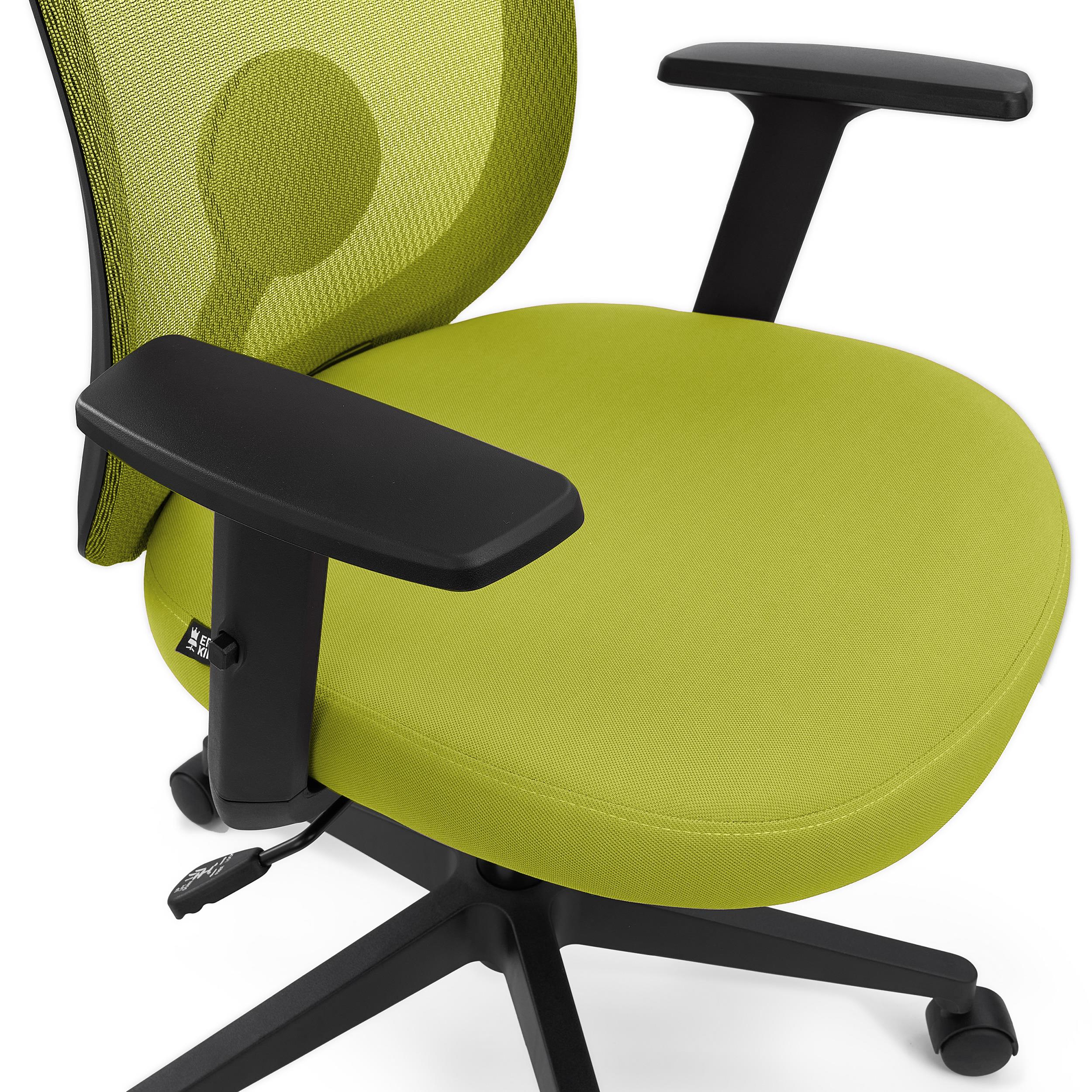 Der Sessel verfügt über einen Synchronmechanismus. Dies ist ein unverzichtbares Merkmal eines guten Stuhls und bietet zusätzlichen Komfort, für den Sie sehr dankbar sein werden. Sie können die Rückenlehne feststehend oder wippend belassen und auch den Widerstand einstellen. Die Armlehnen sind in der Höhe verstellbar und mit weichen Softpadauflagen ausgestattet. Sie sind ein weiteres Element für eine gute Körperhaltung, was sich in einem höheren Komfort widerspiegelt. Darüber hinaus entsprechen die Stabilität, die sie bieten, den Erwartungen an einen Stuhl für intensive 8-Stunden-Nutzung.