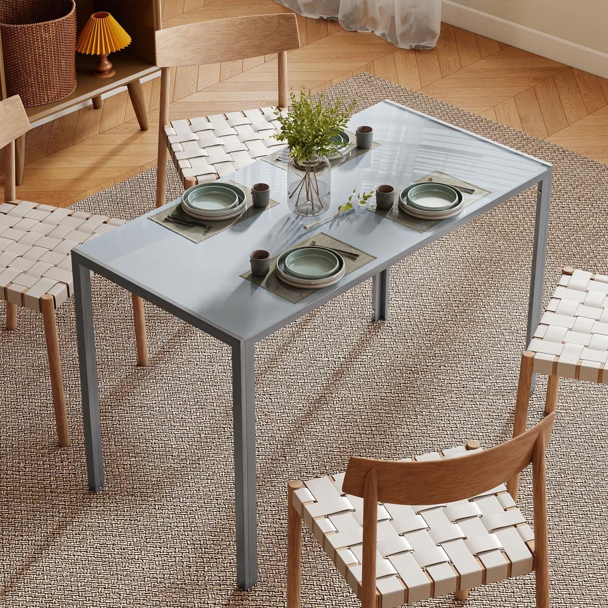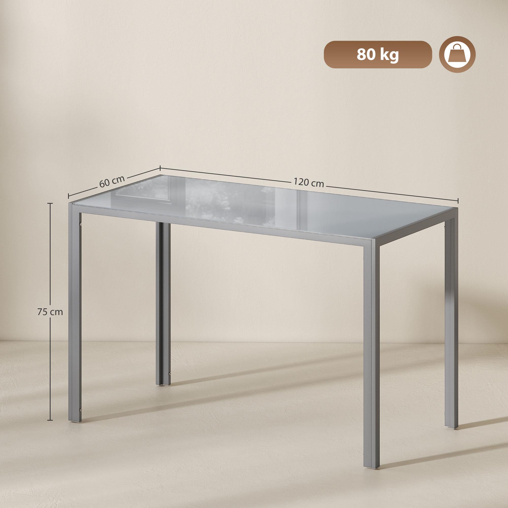 Bürotisch MAPUTO, 120x60x75 cm, Metallgestell mit Tischplatte aus gehärtetem Glas, Farbe Grau
