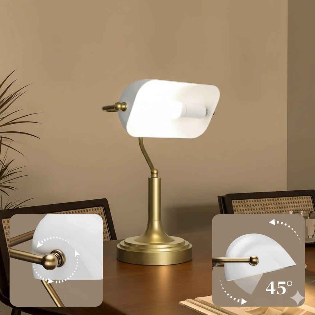Bürotischlampe HALO, Vintage-Design, verstellbarer Lampenschirm, Metall und Acryl, Farbe Weiß