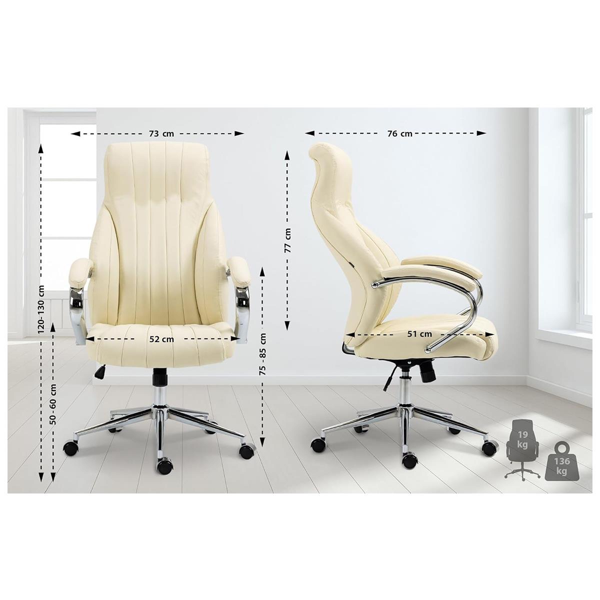 Chefsesssel DANIA, elegant und robust, Metallgestell, Echtleder, Farbe Creme