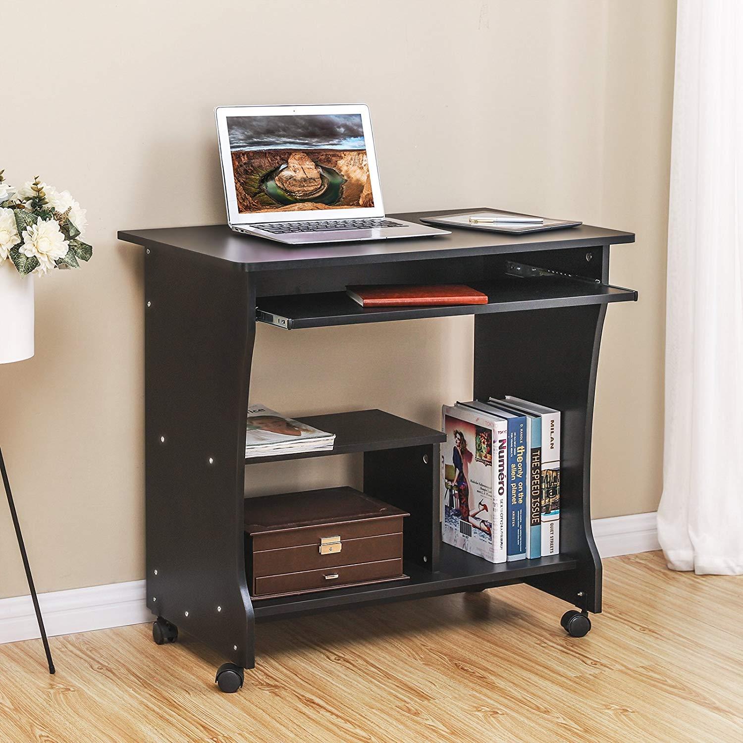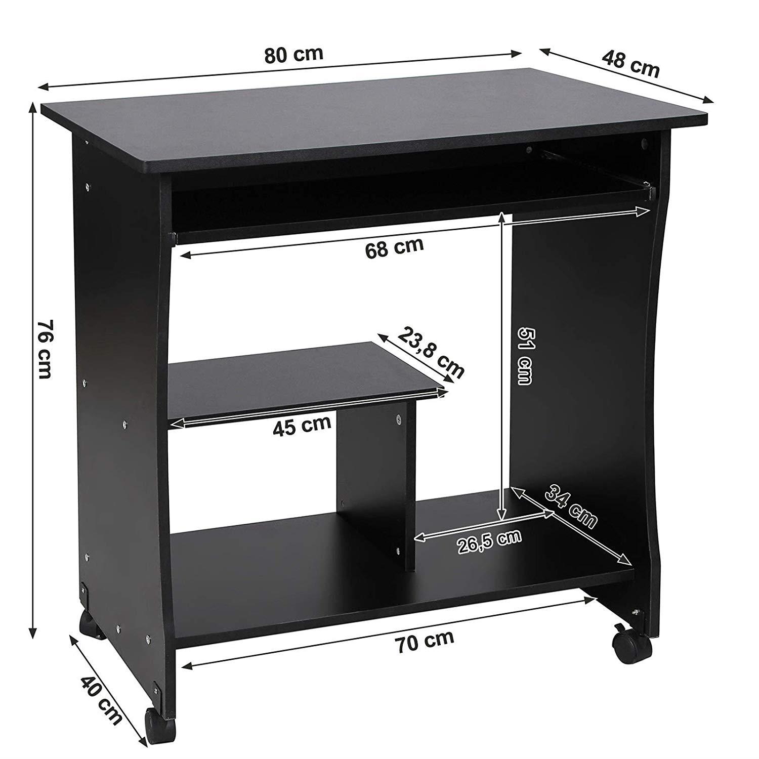 Computertisch mit Rollen KIARA, 80 x 48 x 76 cm, aus Holz, Farbe Schwarz