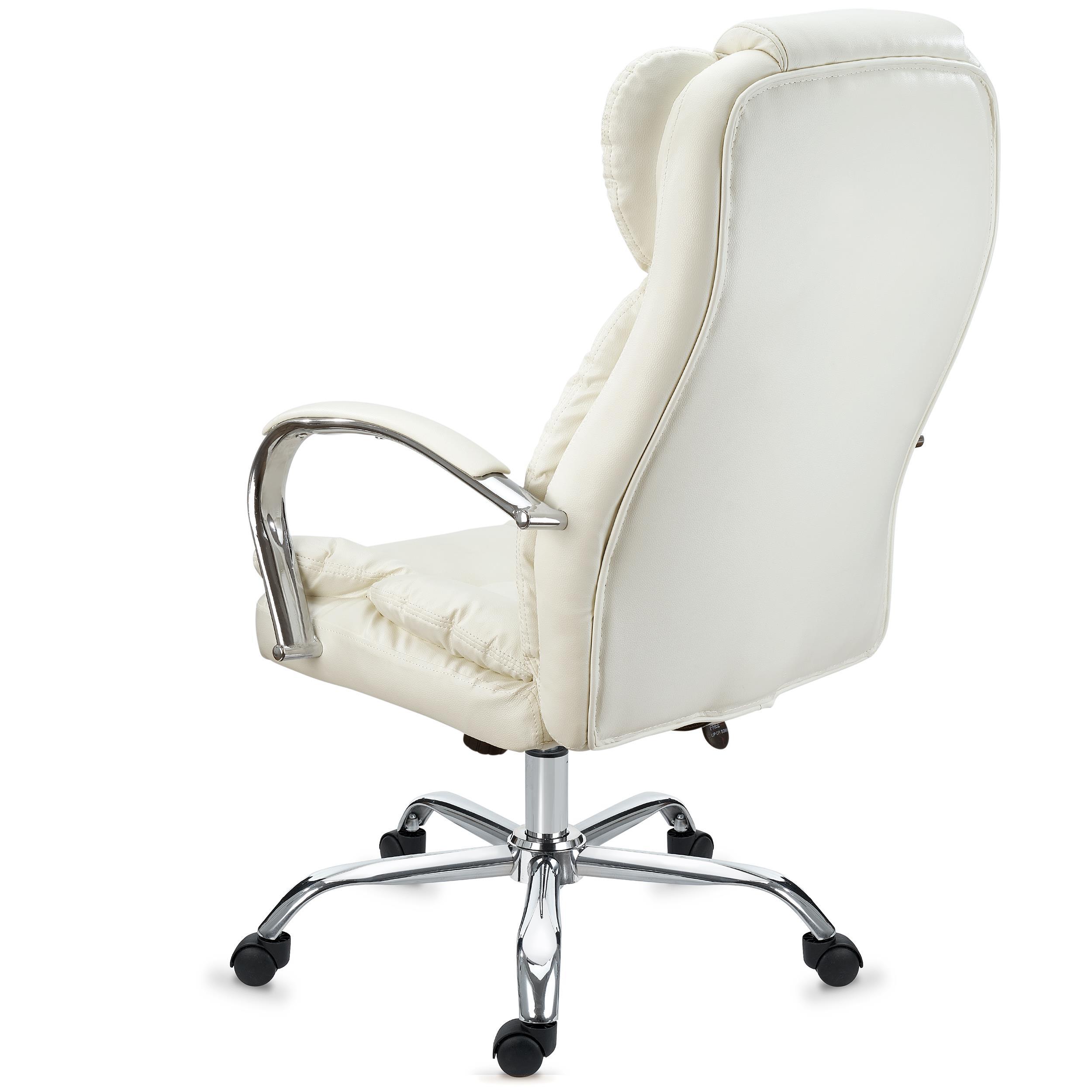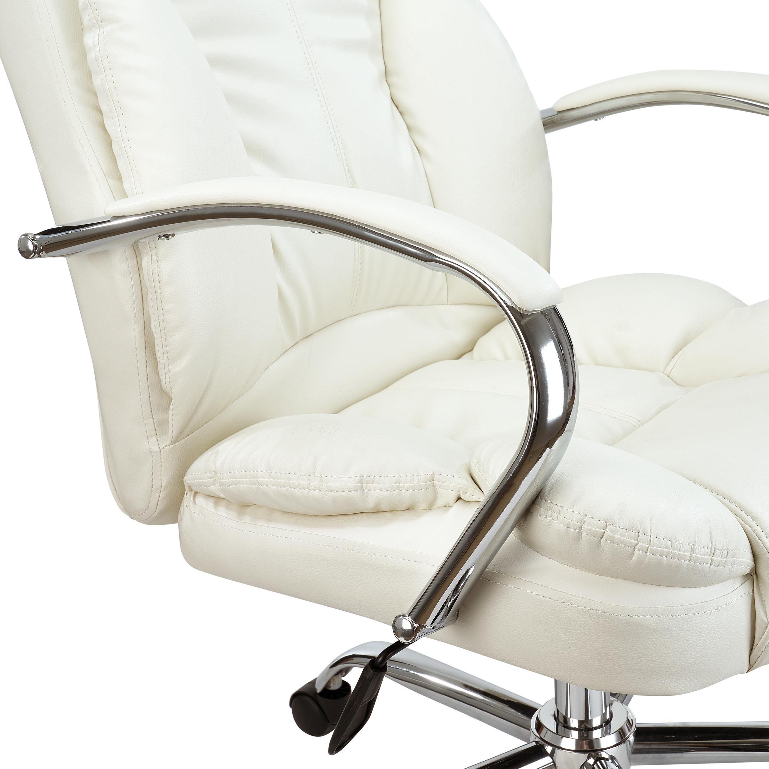 Wie schon erwähnt wurden zur Herstellung nur erstklassige Materialien verwendet. Für Stabilität und Robustheit sorgt das Fußkreuz aus verchromtem Stahl. Auf dem Markt werden Sie nicht viele Modelle mit Armlehnen aus verchromten Stahl finden, das heißt, dieser Stuhl ist etwas ganz Besonderes. Darüber hinaus sind die Armlehnen auch noch gepolstert und mit Leder bezogen, was will man mehr!