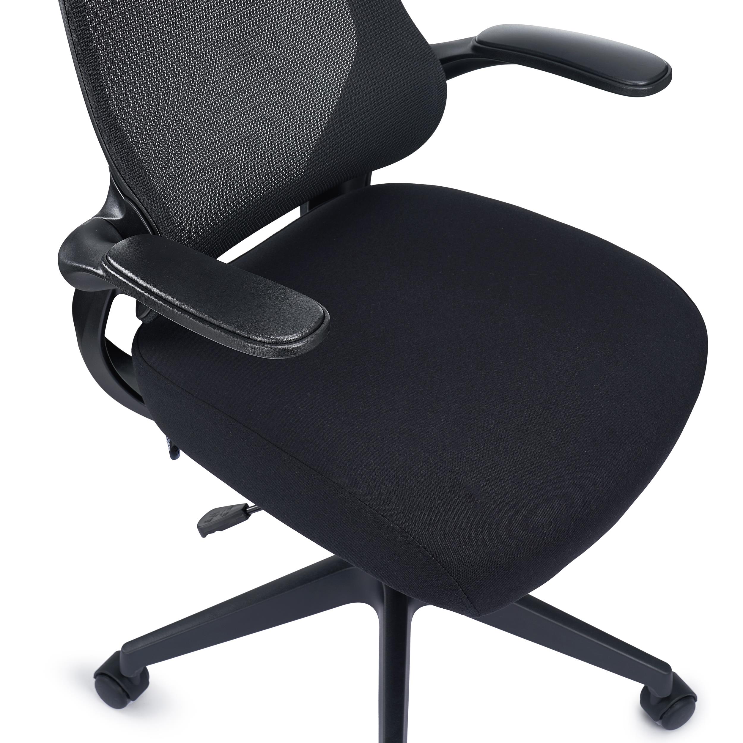 Die wichtigsten Aspekte dieses Modells sind sein Design und die klappbaren Armlehnen. Sein avantgardistischer und zugleich zeitloser Stil macht ihn zu einer sicheren Wahl für den Einsatz im Büro, im Home Office oder bei der Telearbeit. Die klappbaren Armlehnen sind sehr praktisch, da sie hochgeklappt werden können, um mehr Bewegungsfreiheit zu haben. Außerdem lässt sich der Stuhl leichter unter den Schreibtisch stellen, so dass er weniger Platz einnimmt.