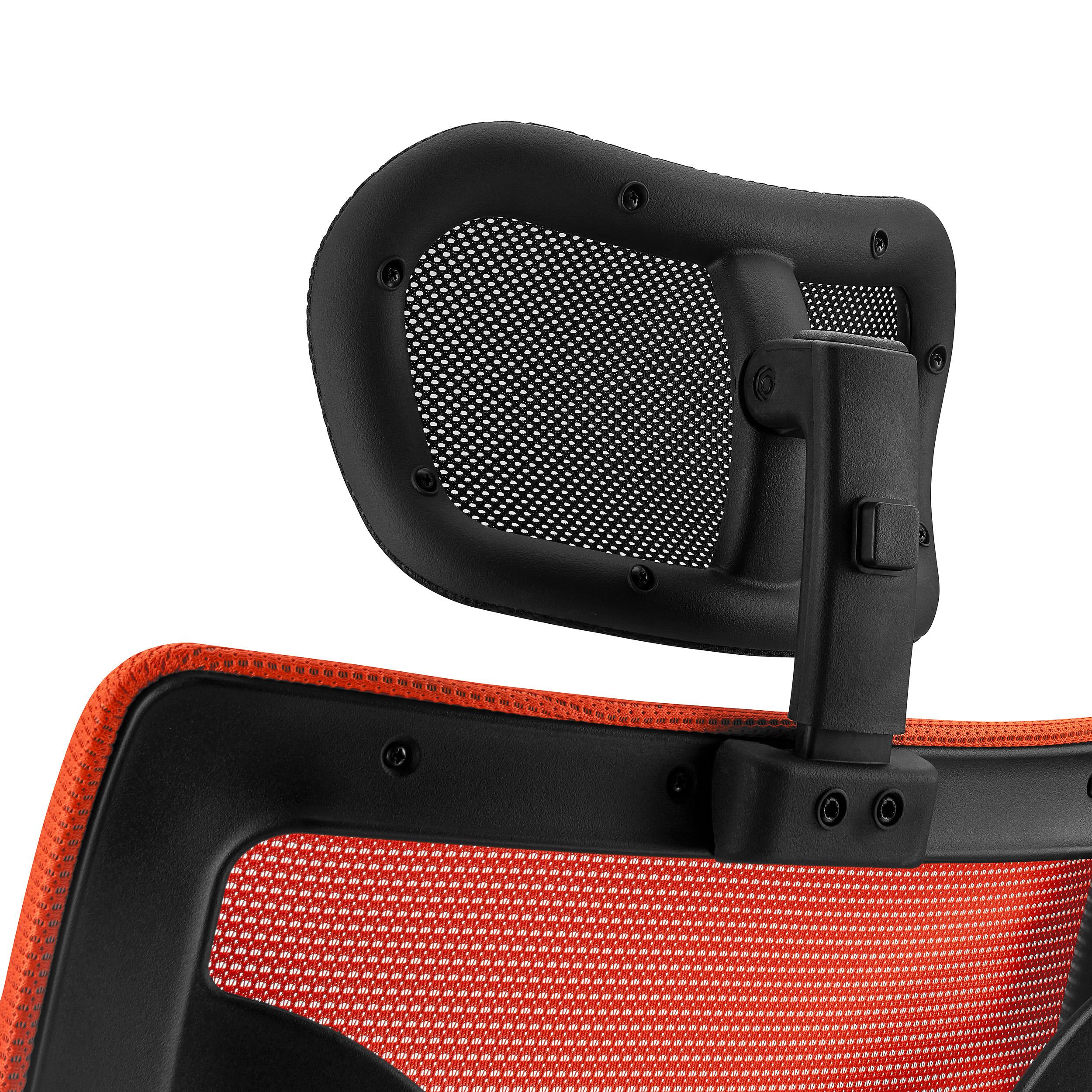 Als Ergängung hierzu verfügt der Stuhl über eine höhen- und neigungsverstellbare Kopfstütze aus Netzstoff zur Entspannung des Kopf- und Nackenbereichs.