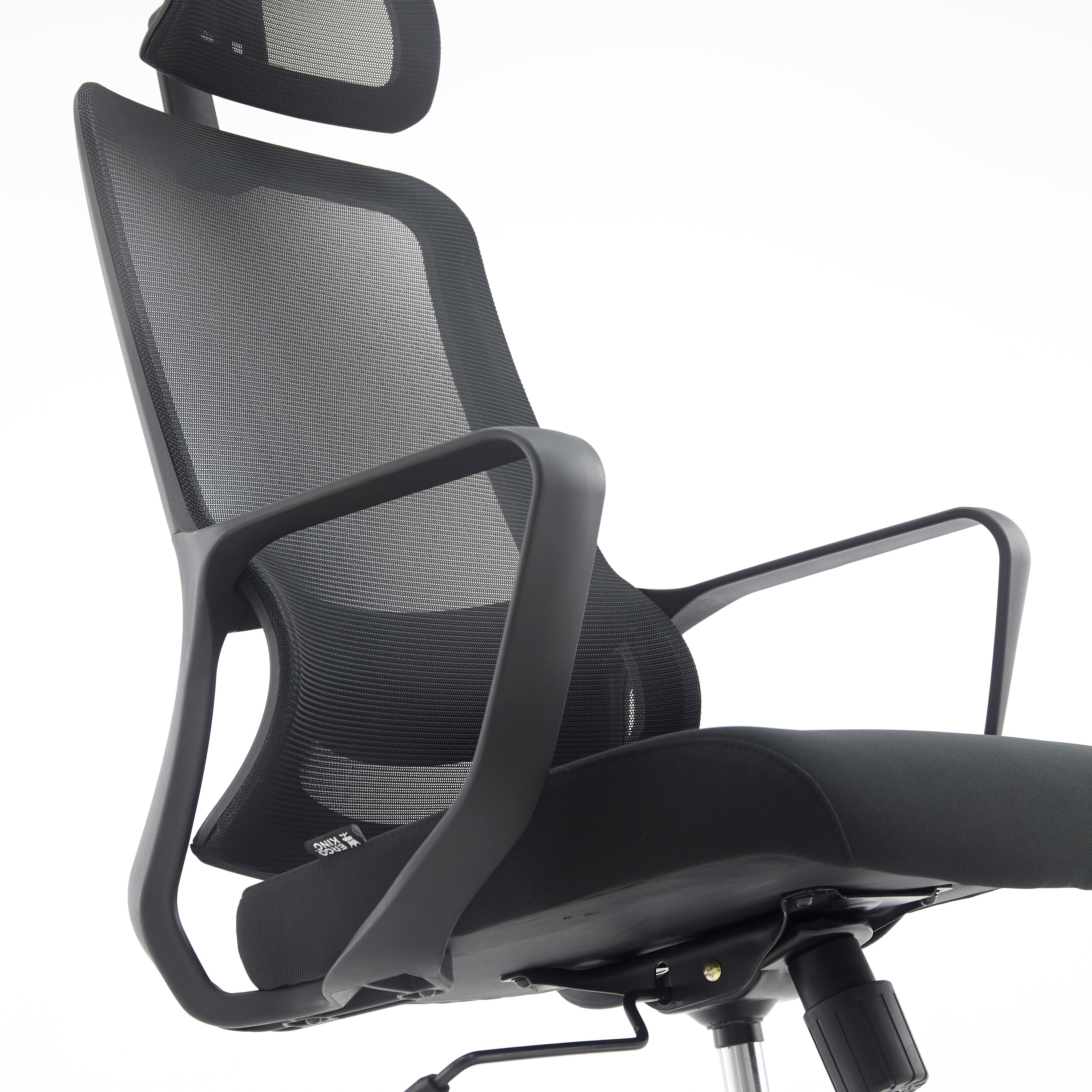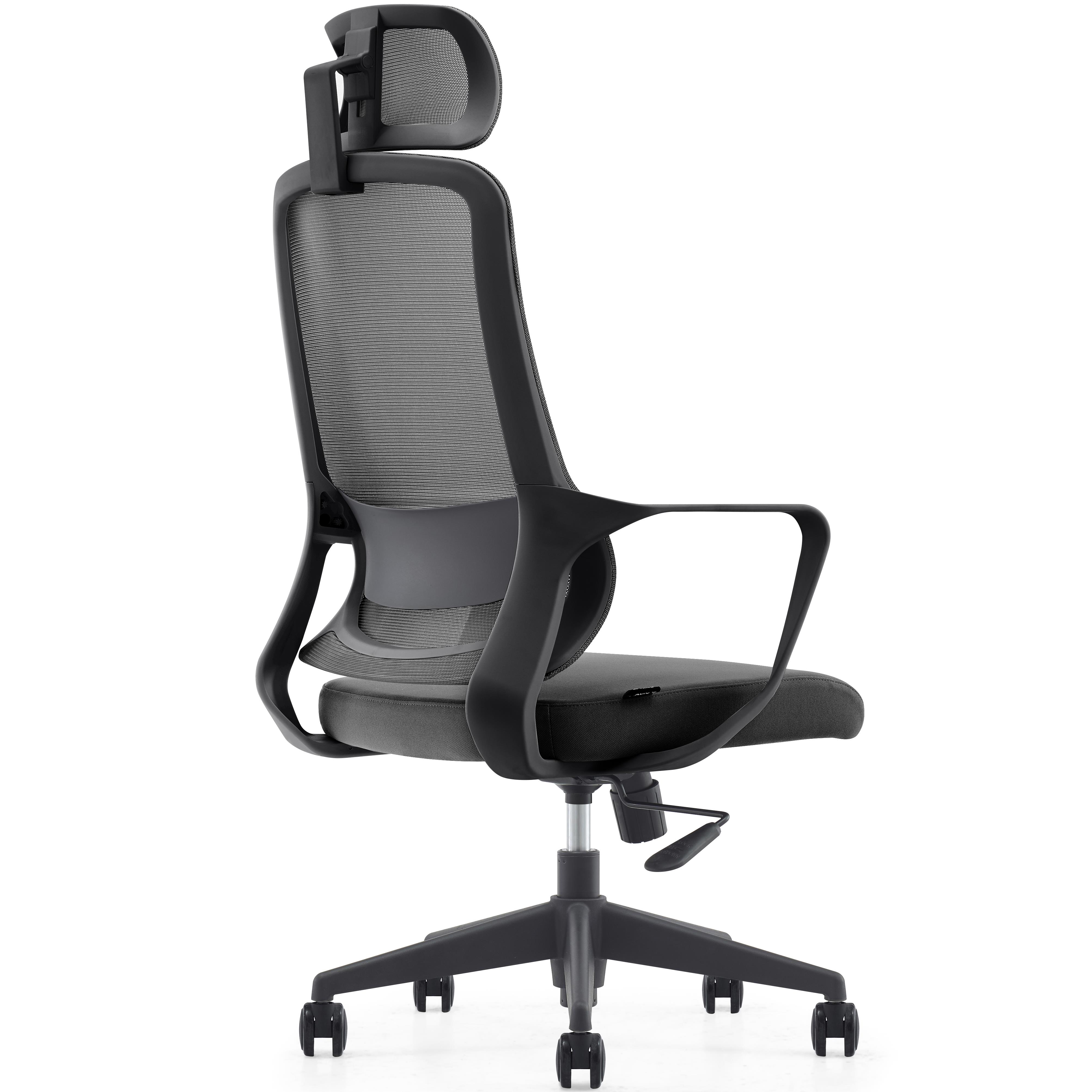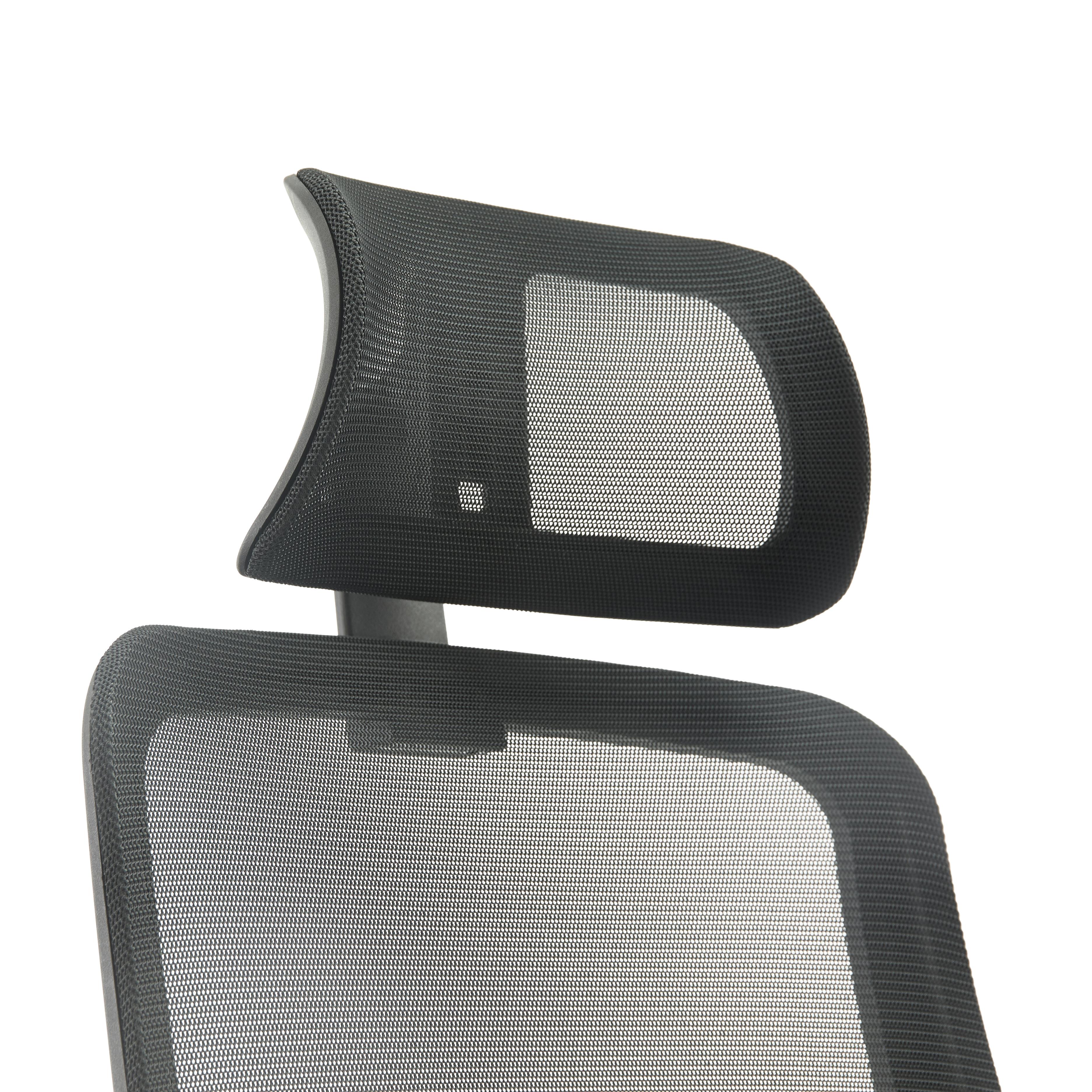 Die Rückenlehne verfügt über eine Lordosenstütze, die den unteren Rücken stützt, das Gewicht entlastet und lästigen Rückenschmerzen und Fehlhaltungen vorbeugt. Er ist außerdem mit einer in Höhe und Neigung verstellbaren Kopfstütze ausgestattet, die Sie an Ihre Bedürfnisse anpassen können. Der Bezug besteht aus atmungsaktivem Netzstoff, sodass er auch während den wärmsten Monaten atmungsaktiv und kühl bleibt.