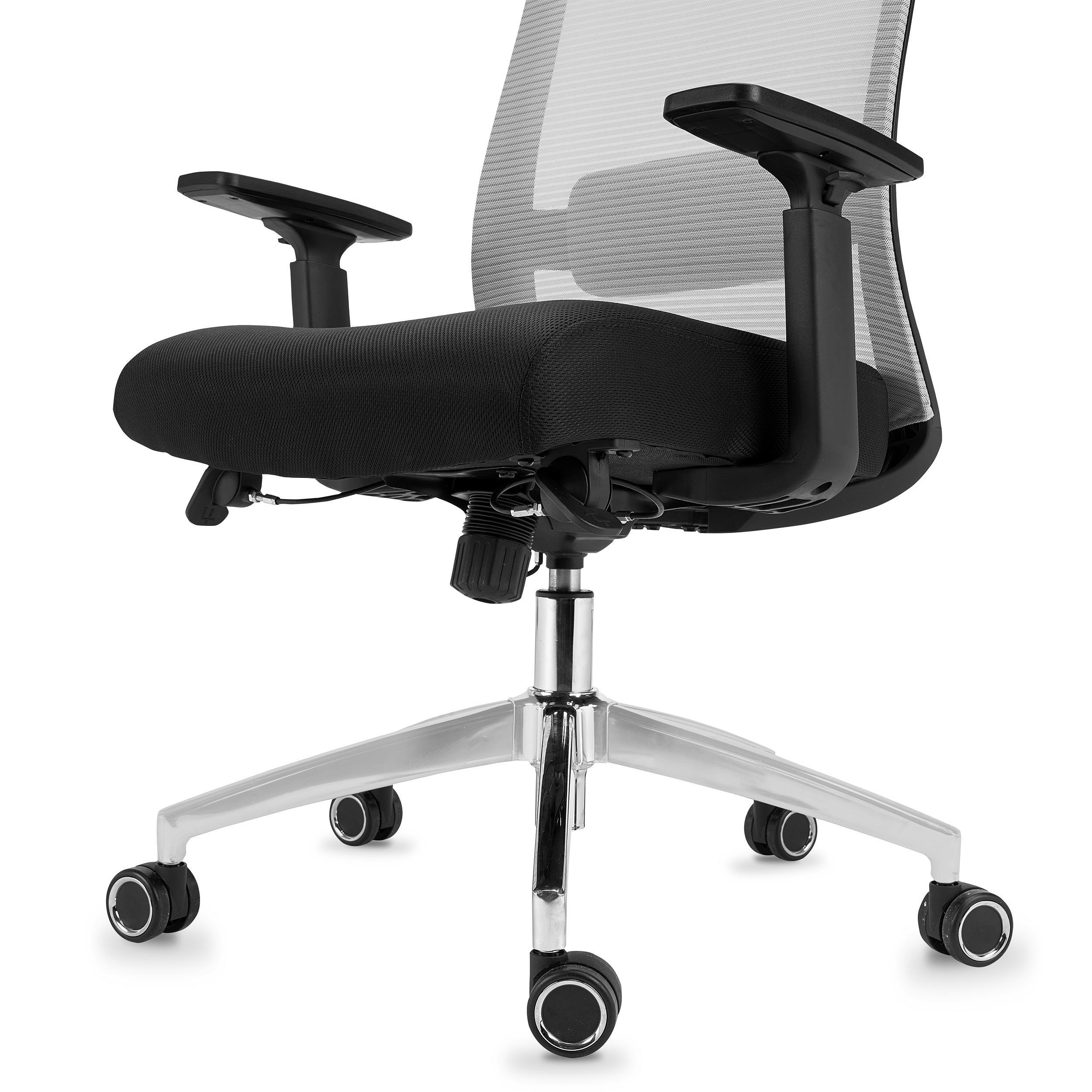 Dieses Modell besticht durch seinen äußerst hohen Komfort und seine Vielzahl von Verstellmöglichkeiten. Die Rückenlehne kann in der Tiefe in 2 verschiedenen Positionen angepasst werden. Ein großer Vorteil dieses Produkts liegt in seiner ergonomischen Rückenlehne mit Lordosenstütze. Dieses Element stützt Ihren Rücken optimal und gewährleistet eine korrekte Körperhaltung beim Arbeiten. Ihr Rücken wird Ihnen dankbar sein.