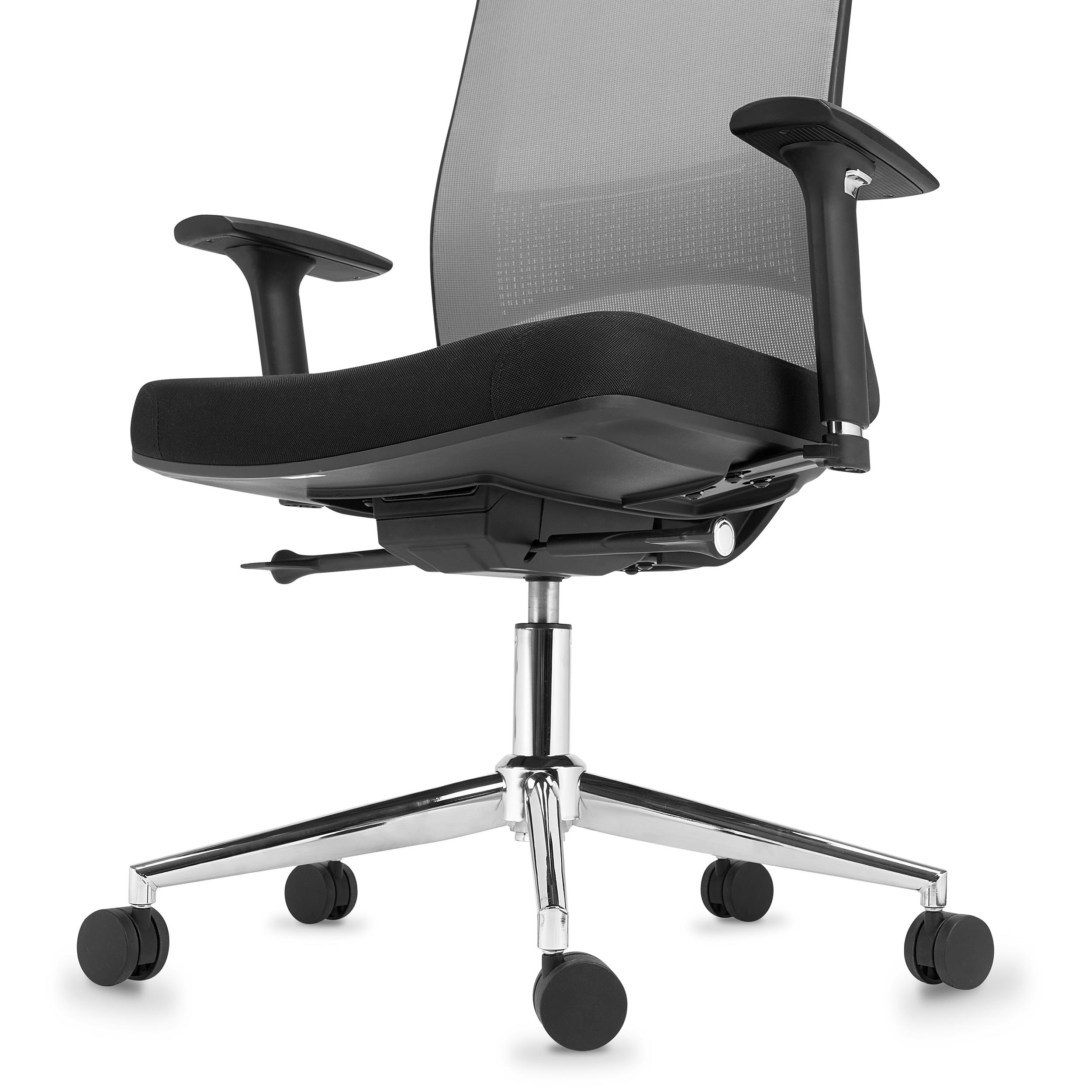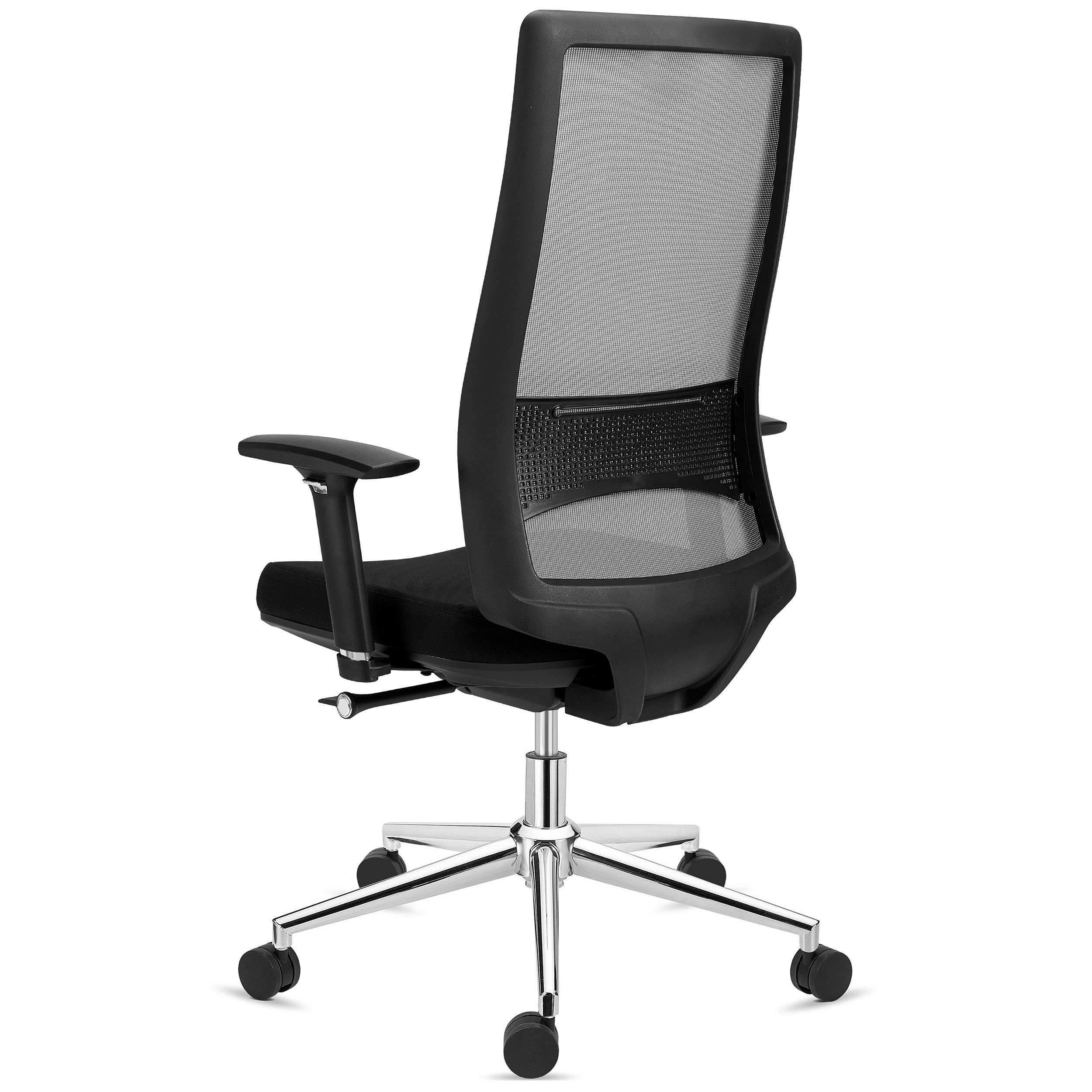 Seine 100% atmungsaktive, ergonomisch geformte Rückenlehne aus Netzstoff mit Lendenwirbelstütze macht diesen Stuhl zu einem besonders bequemen Modell. Diese Lehne wurde speziell entwickelt, um dem Rücken eine optimale Stütze zu bieten, dafür ist die höhenverstellbare Lordosenstütze extra betonenswert.