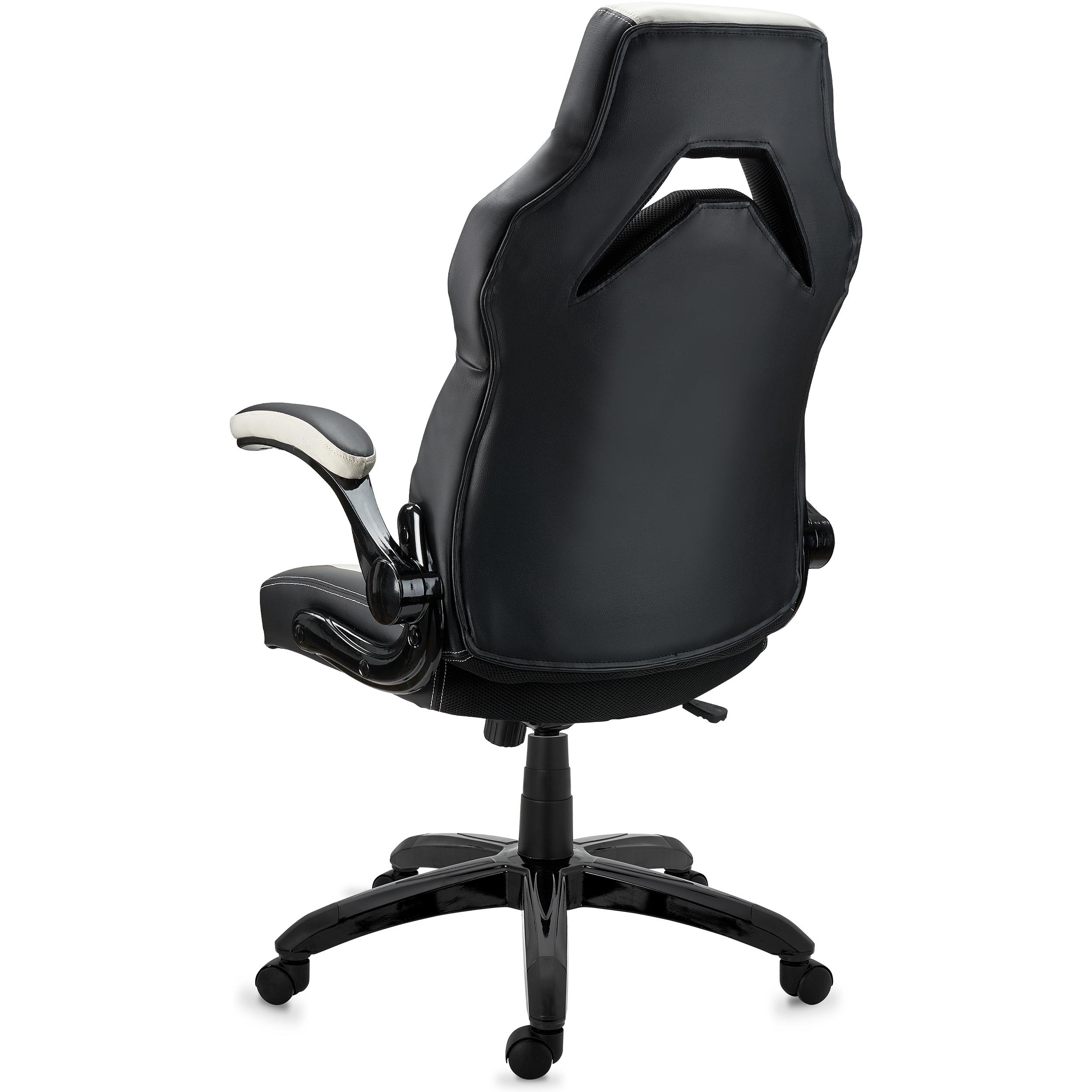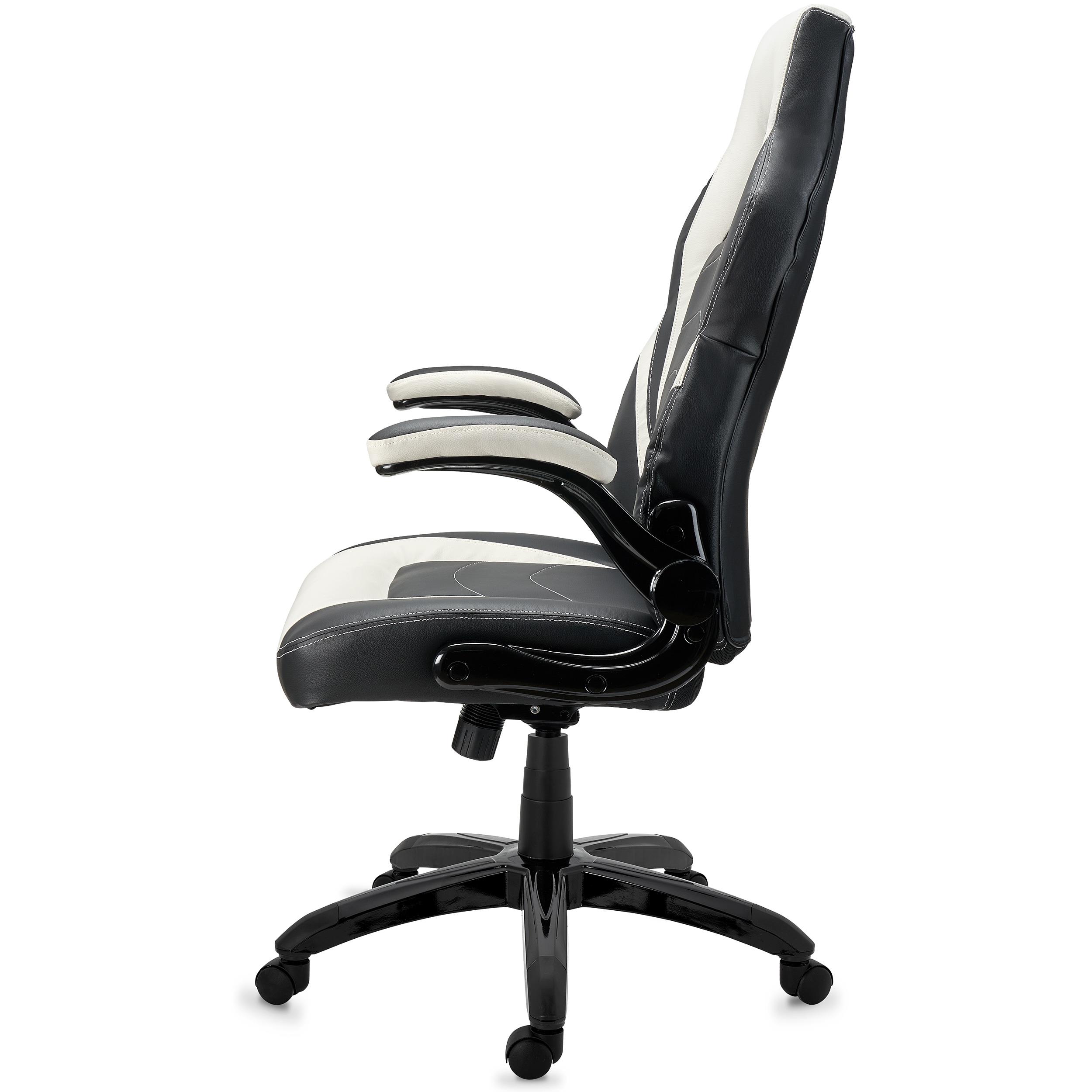DEMO# Gaming-Stuhl NITRO, dicke Polsterung, klappbare Armlehnen, Lederbezug, Farbe Schwarz / Weiß