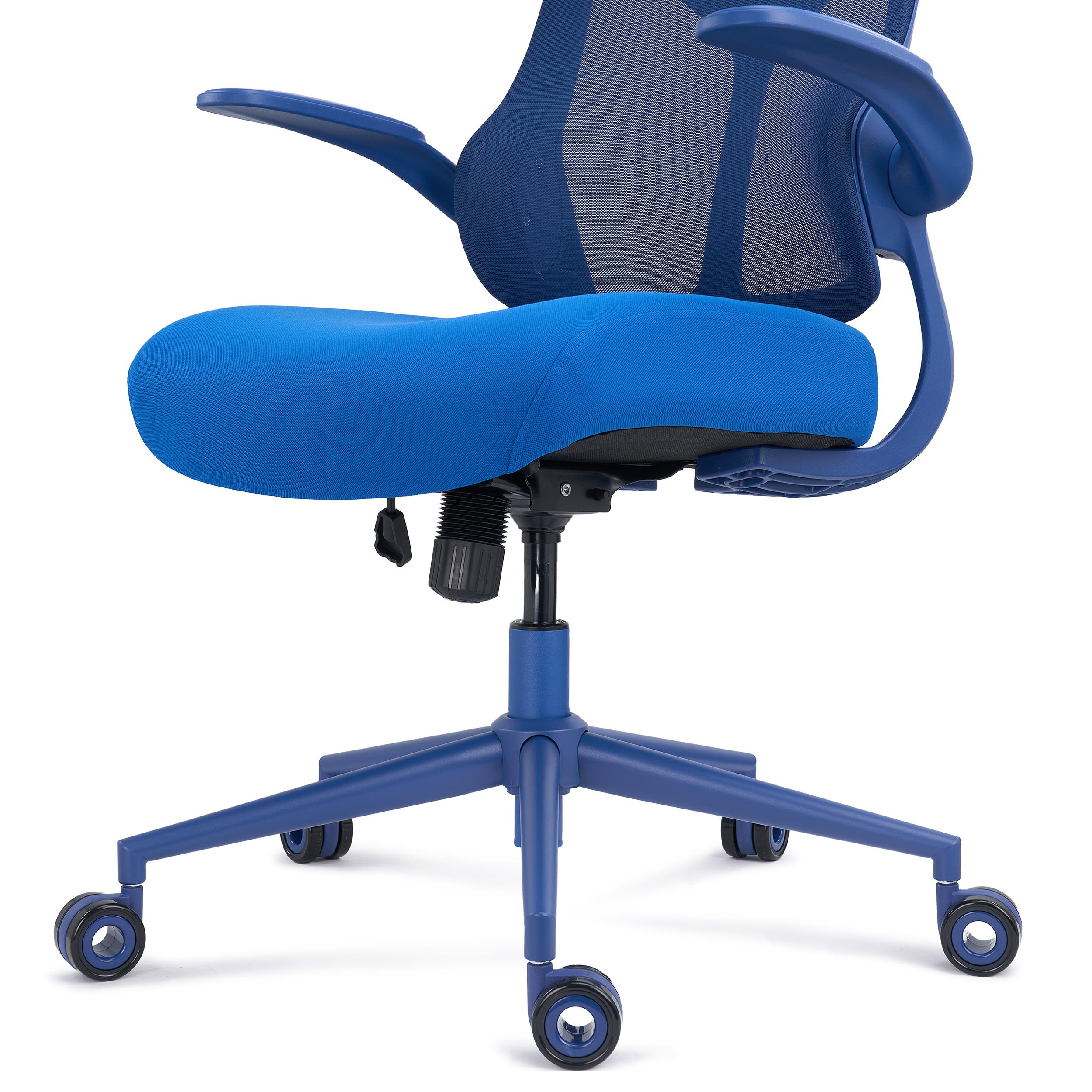 Die wichtigsten Aspekte dieses Modells sind sein Design und die klappbaren Armlehnen. Sein avantgardistischer und zugleich zeitloser Stil macht ihn zu einer sicheren Wahl für den Einsatz im Büro, im Home Office oder bei der Telearbeit. Die klappbaren Armlehnen sind sehr praktisch, da sie hochgeklappt werden können, um mehr Bewegungsfreiheit zu haben. Außerdem lässt sich der Stuhl leichter unter den Schreibtisch stellen, so dass er weniger Platz einnimmt.