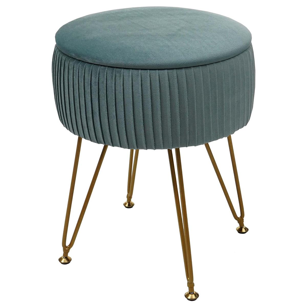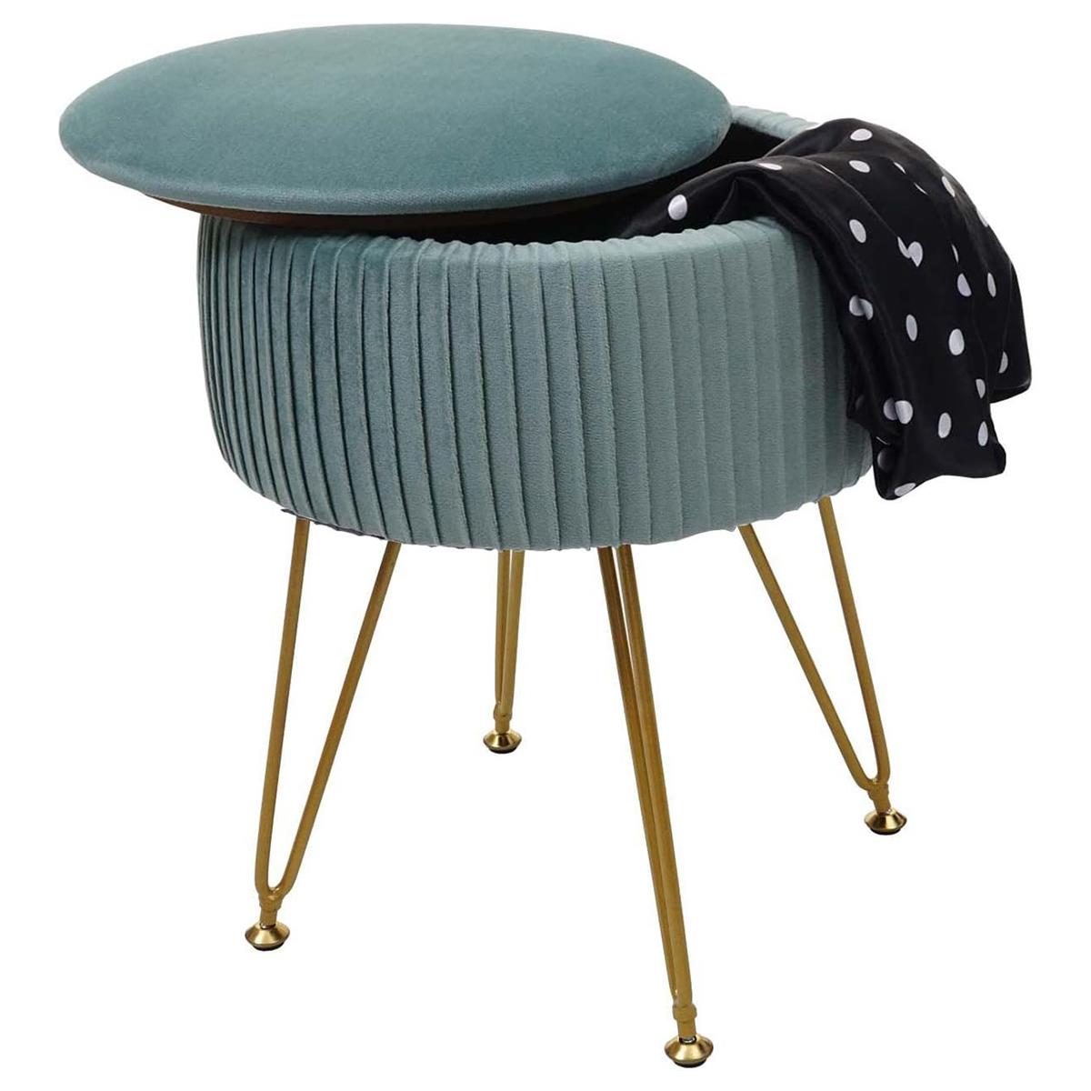 Hocker MIKO, mit Stauraum, vielseitig und praktisch, goldfarbenes Gestell, Stoffbezug, Grün