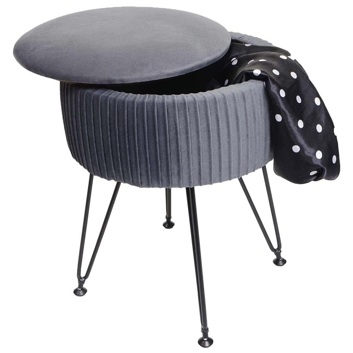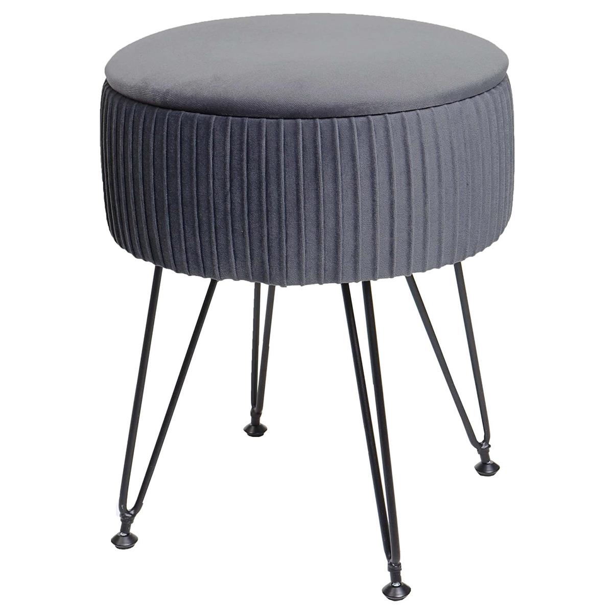 Hocker MIKO, mit Stauraum, vielseitig und praktisch, schwarzes Gestell, Stoffbezug, Grau