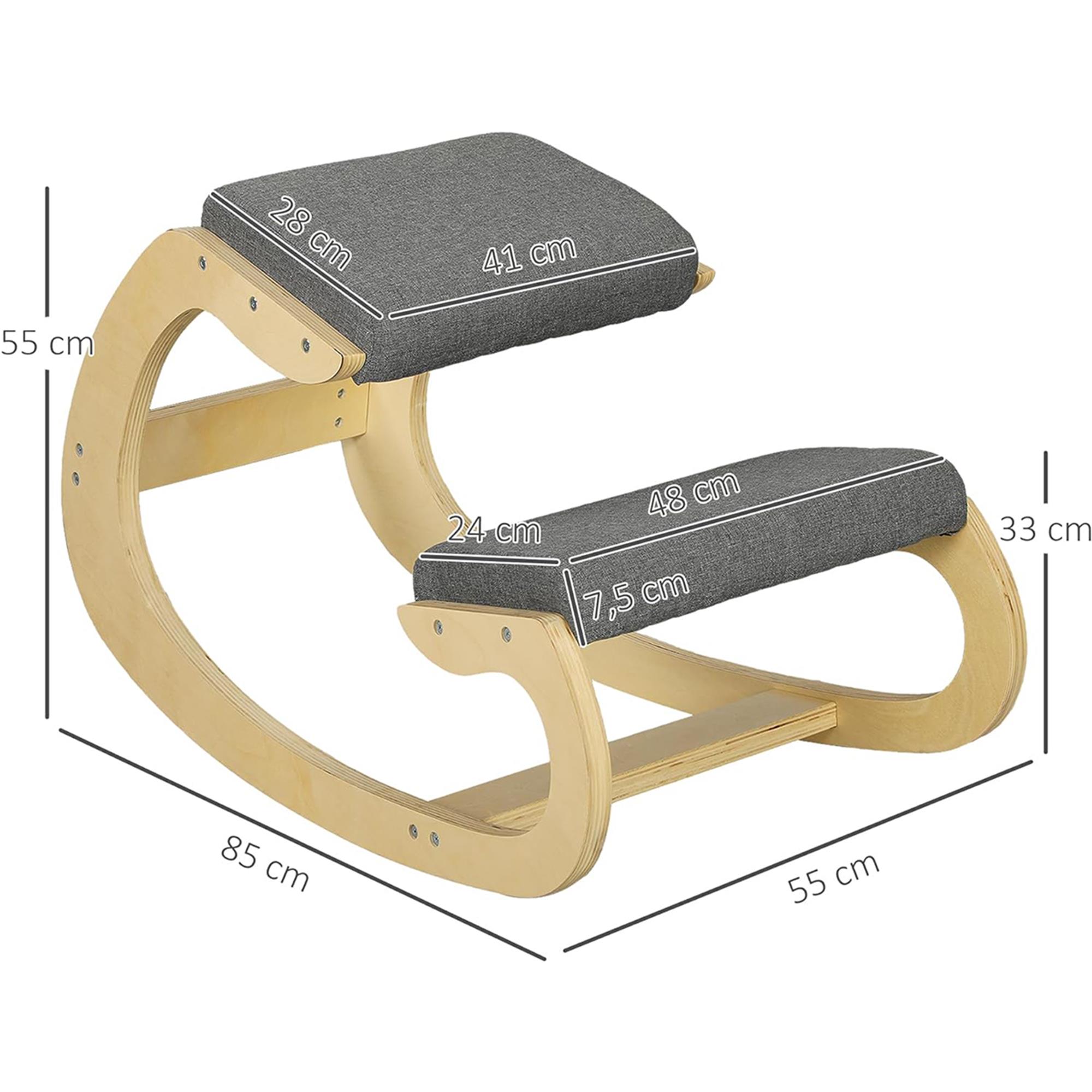 Kniestuhl YOSI, ergonomischer Hocker, bequeme Polster, Holzgestell mit Stoffbezug, Farbe Grau