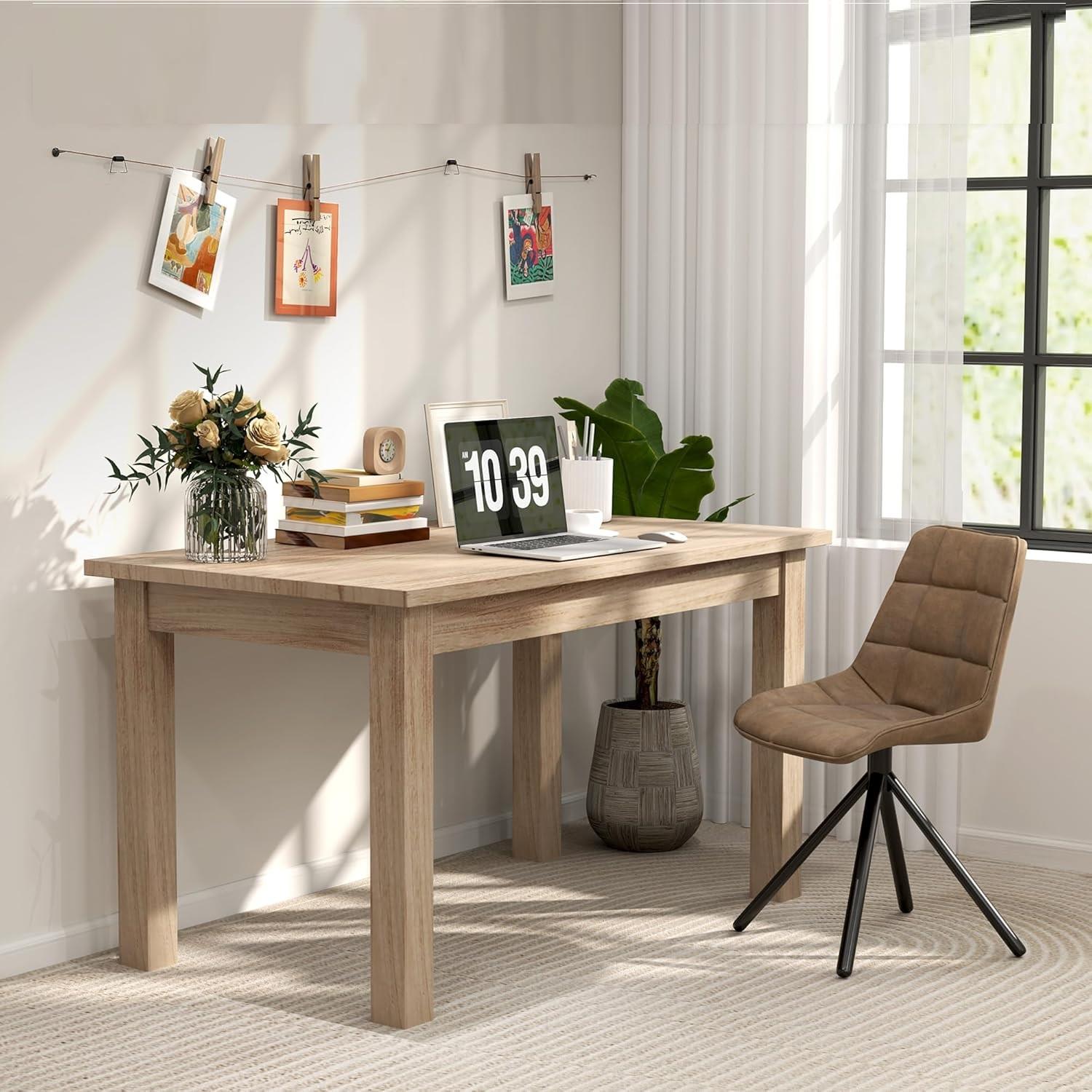 Der Tisch besteht aus laminiertem MDF-Holz, einem widerstandsfähigen Material, das nicht nur optisch ansprechend ist, sondern auch für den täglichen Gebrauch ausgelegt ist.
