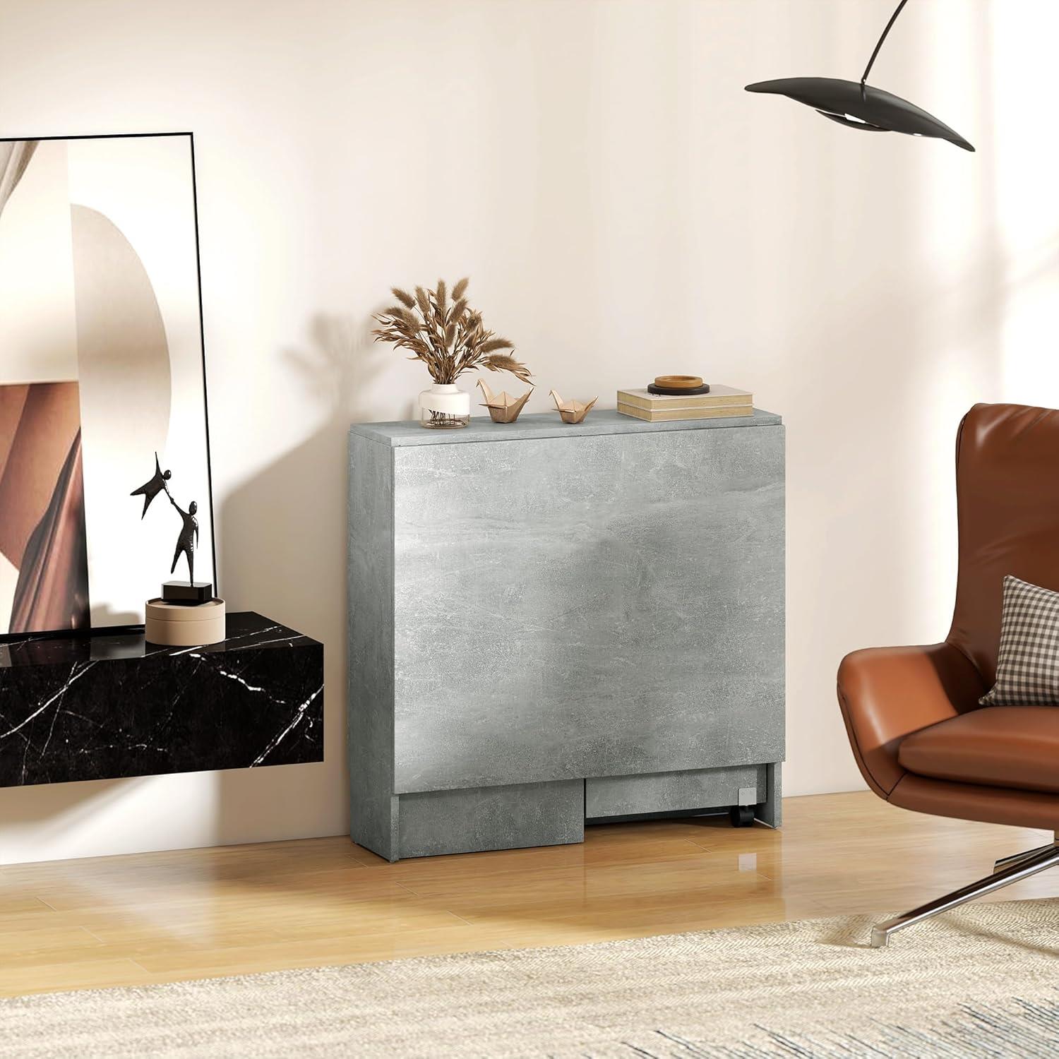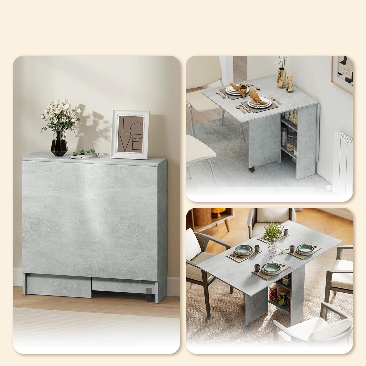 Der Tisch verfügt über ein intelligentes System mit zwei klappbaren Seitenflügeln, das maximale Anpassungsfähigkeit ermöglicht. Je nach Nutzung lässt er sich von einer schmalen Konsole mit nur 23 cm Tiefe zu einer großzügigen Tischfläche von bis zu 140 cm erweitern, an der bequem bis zu sechs Personen Platz finden. Dadurch kann er in drei Varianten genutzt werden: komplett eingeklappt als kompakter Beistelltisch, halb geöffnet für kleinere Arbeiten oder vollständig ausgeklappt für Meetings und gemeinsame Aktivitäten.