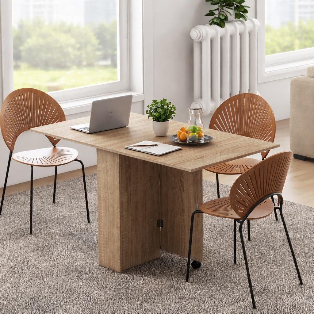 Der Tisch verfügt über ein intelligentes System mit zwei klappbaren Seitenflügeln, das maximale Anpassungsfähigkeit ermöglicht. Je nach Nutzung lässt er sich von einer schmalen Konsole mit nur 23 cm Tiefe zu einer großzügigen Tischfläche von bis zu 140 cm erweitern, an der bequem bis zu sechs Personen Platz finden. Dadurch kann er in drei Varianten genutzt werden: komplett eingeklappt als kompakter Beistelltisch, halb geöffnet für kleinere Arbeiten oder vollständig ausgeklappt für Meetings und gemeinsame Aktivitäten.