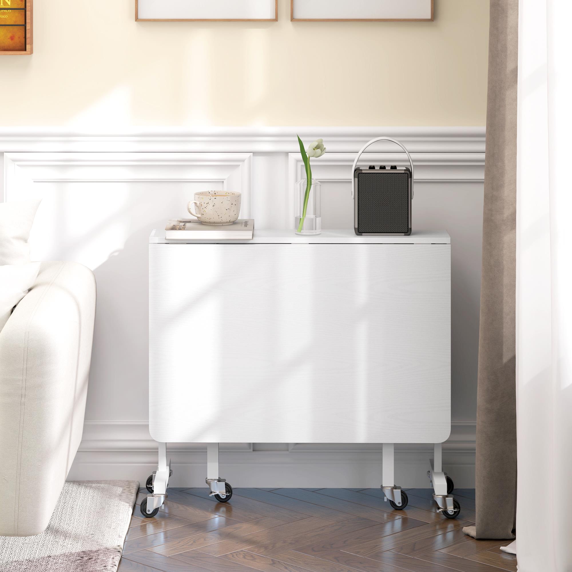 Konferenztisch NICOSIA, Metall und Holz, klappbar mit Rollen, 2 klappbare Seitenflügel, 120 x 80 x 73 cm, Farbe Weiß