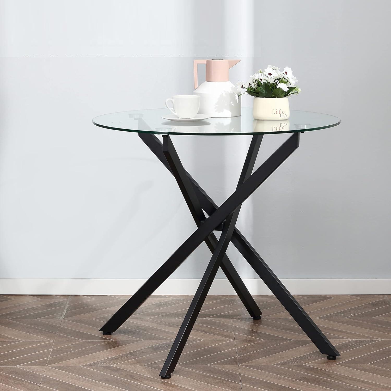 Konferenztisch ORBITA, Abmessungen Ø80x75cm, runde Glastischplatte, modernes Metallgestell, Farbe Schwarz