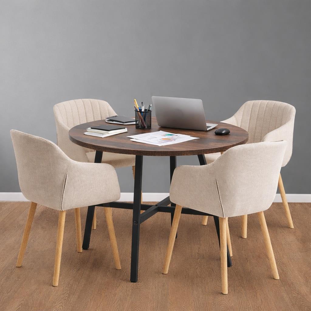 Konferenztisch ROGA, rund, modernes Design mit stabilen Stahlbeinen, 80 × 76 cm, Rustikbraun und Schwarz