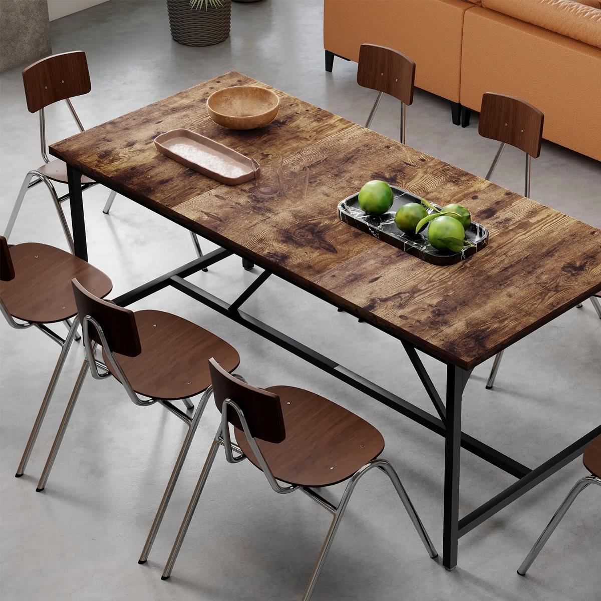 Die 3 cm dicke Holzplatte im rustiken Design verleiht dem Raum Wärme und schafft einen perfekten Industrial-Stil. Dank seiner großzügigen Abmessungen  von 80x180cm bietet die Arbeitsfläche ausreichend Platz für Laptops, Dokumente und sonstige Arbeitsmaterialien und fördert so die Zusammenarbeit und Produktivität bei Meetings und Brainstorming-Sitzungen.