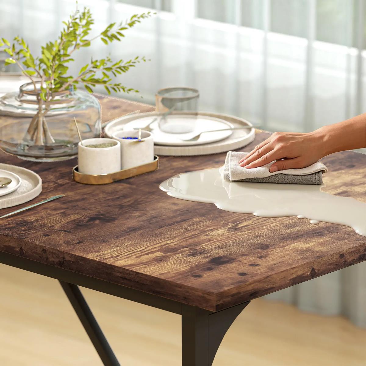 Die Tischplatte aus Holzmelamin ist pflegeleicht und kratzfest sowie alterungsbeständig. Alles ist auf Langlebigkeit ausgelegt – auch bei täglichem Gebrauch.