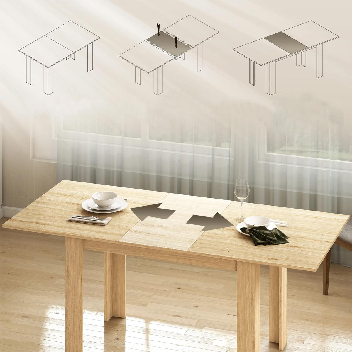 Das Hauptmerkmal dieses Tisches ist seine flexible Größe. Dank seiner Stahlschienen lässt er sich mühelos öffnen und schließen, sodass Sie die Tischfläche problem vergrößern oder verkleinern und somit zwischen einer Tischlänge von 140 oder 180 cm wählen können.