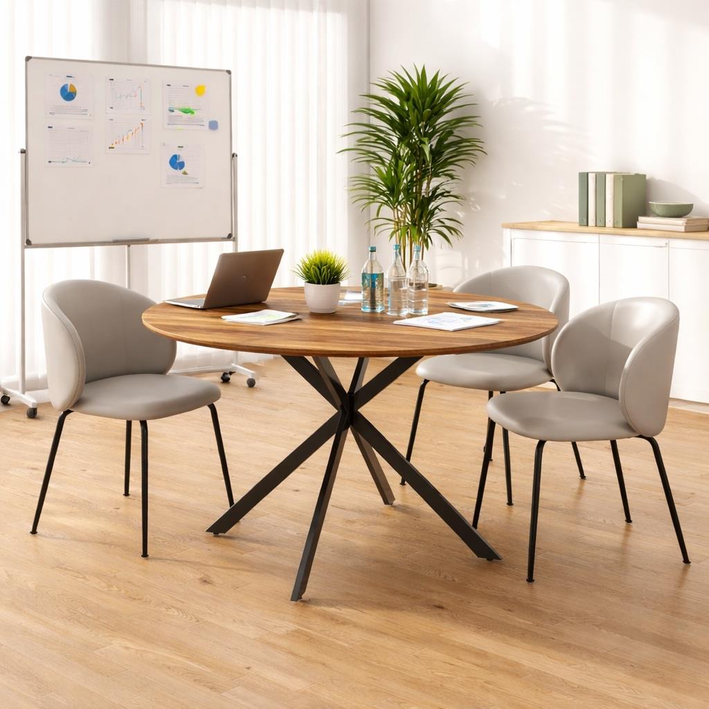 Mit einem Durchmesser von 120 cm bietet der Tisch VENUS komfortabel Platz für bis zu vier Personen. Ob für gemeinsame Mahlzeiten, Konferenzen oder als praktischer Arbeitsplatz – dieser Tisch passt sich flexibel deinen Bedürfnissen an.