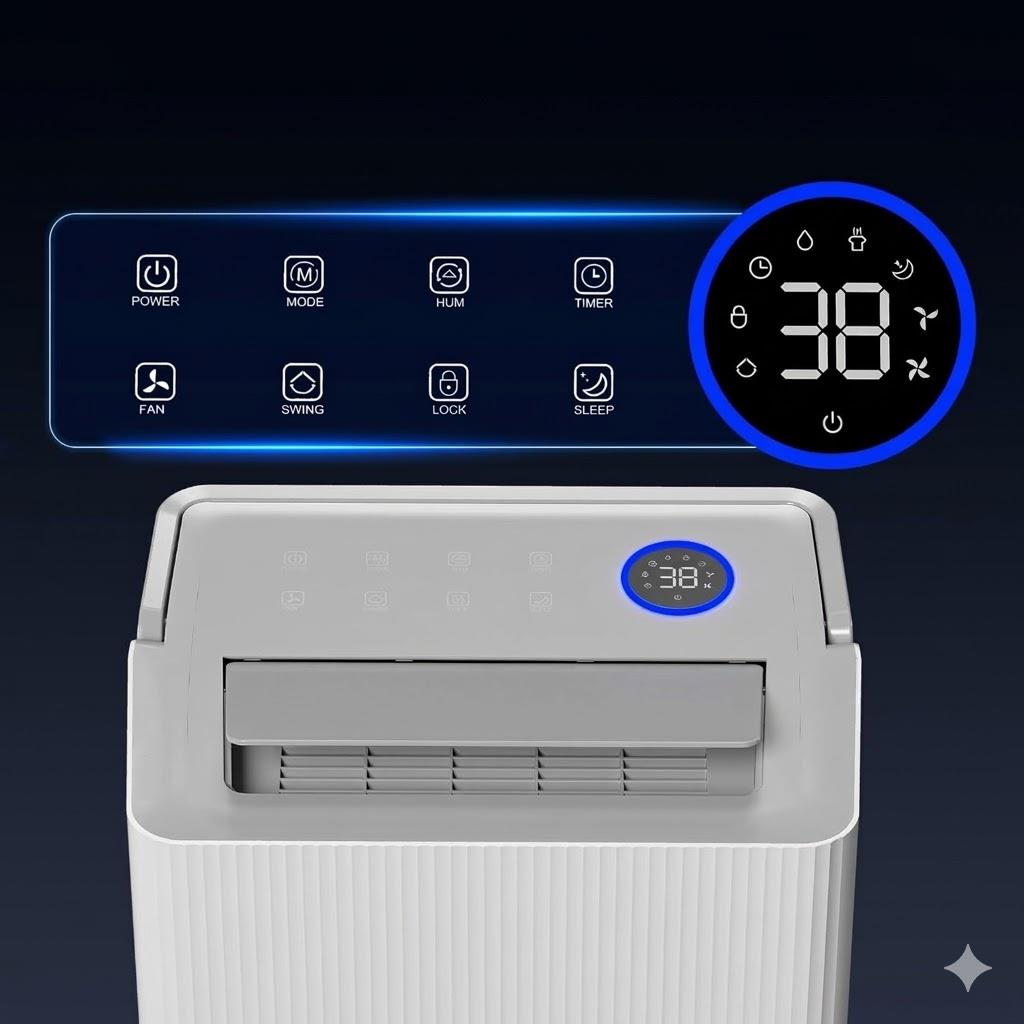 Die Bedienung ist sehr einfach; über das LED-Display lässt sich die Luftfeuchtigkeit im Raum mühelos regeln. Außerdem verfügt das Gerät über eine Kontrollleuchte und schaltet sich zur Sicherheit automatisch ab, sobald der Auffangbehälter voll ist. Dieser Luftentfeuchter ist mit Lenkrollen und einem Griff ausgestattet, sodass er sich leicht transportieren lässt. Er besteht aus strapazierfähigem ABS und verfügt über ein 1,5 m langes Kabel, das die Aufstellung erleichtert. Er wird mit 220–240 V/50 Hz betrieben, hat eine Leistung von 485 W und verwendet das Kältemittel R290.