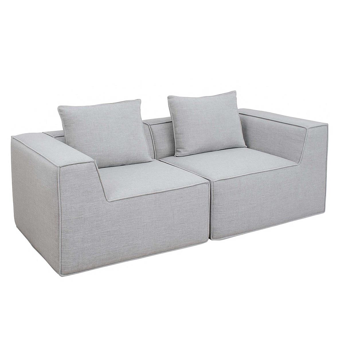 Sofa NANUK, 2-Sitzer, vielseitig und bequem, mit Kissen, Stoff, Hellgrau